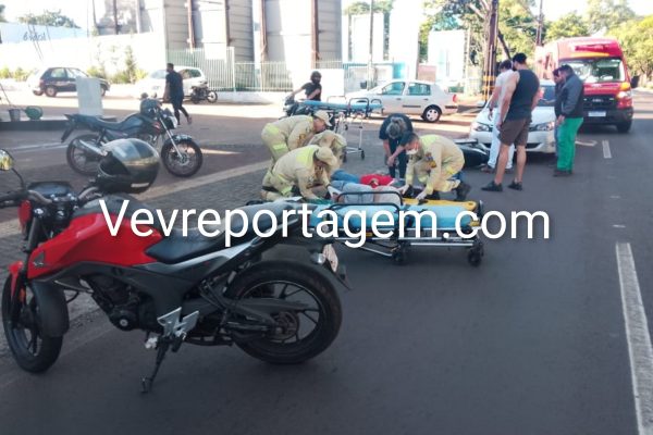 Acidente entre carro e moto deixa duas pessoas feridas na Avenida JK