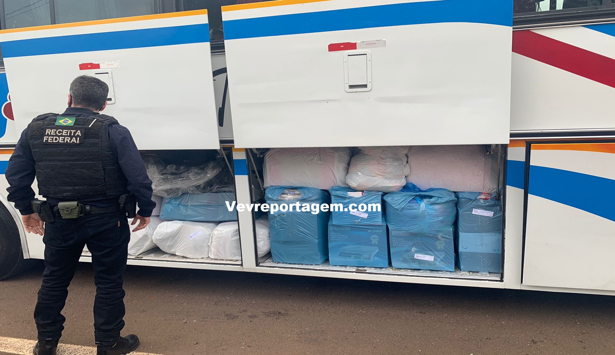 Os ônibus de turismo e as mercadorias foram retidos e encaminhados à Receita Federal de Foz do Iguaçu.