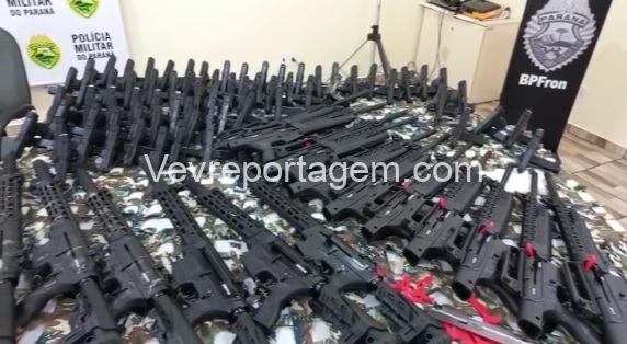 A Polícia Militar do Paraná realizou uma apreensão histórica de fuzis e pistolas em dois caminhões de origem paraguaia. Os armamentos estavam escondidos dentro das unidades tratoras de caminhões carregados com arroz.