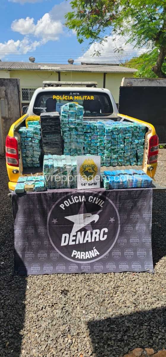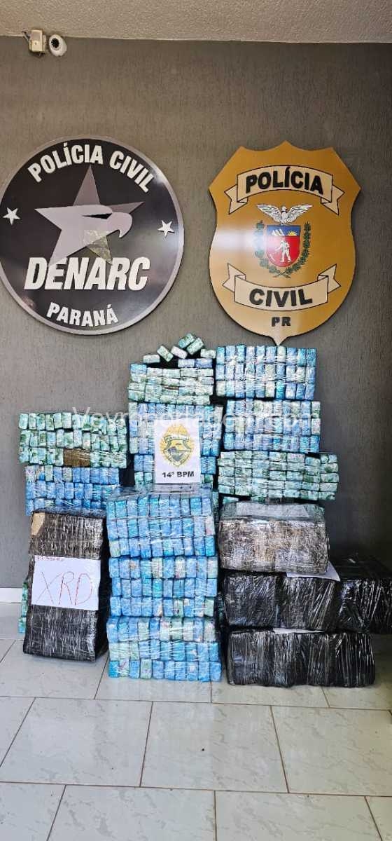 A Polícia Civil do Paraná (PCPR), por meio da Divisão Estadual de Narcóticos (DENARC), núcleo de Foz do Iguaçu, em ação integrada com a Polícia Militar, apreendeu 582 quilos de maconha, um carregador de pistola 9 mm com capacidade para 30 disparos e sete munições intactas, durante operação realizada nesta sexta-feira (22), no bairro Jardim América, em Foz do Iguaçu.