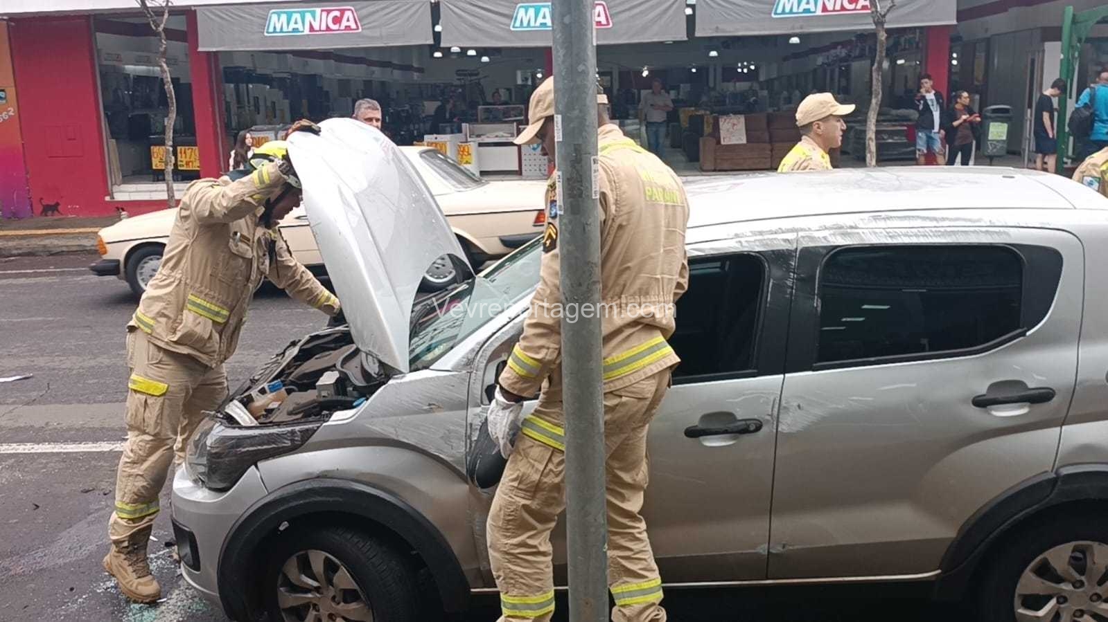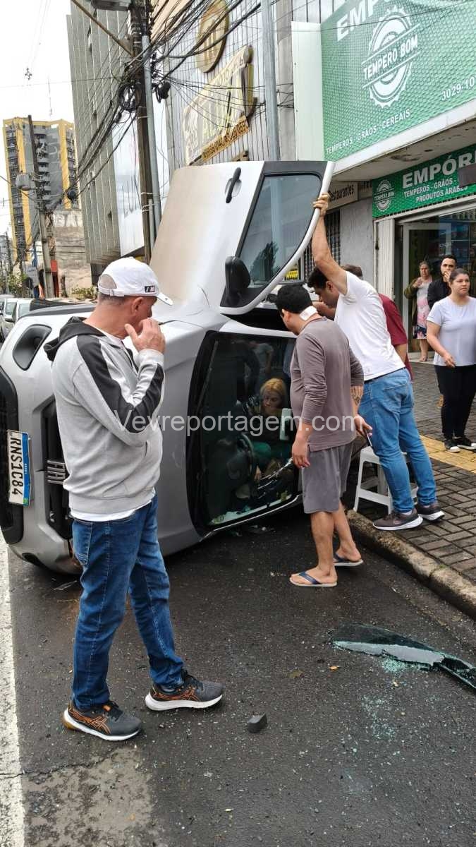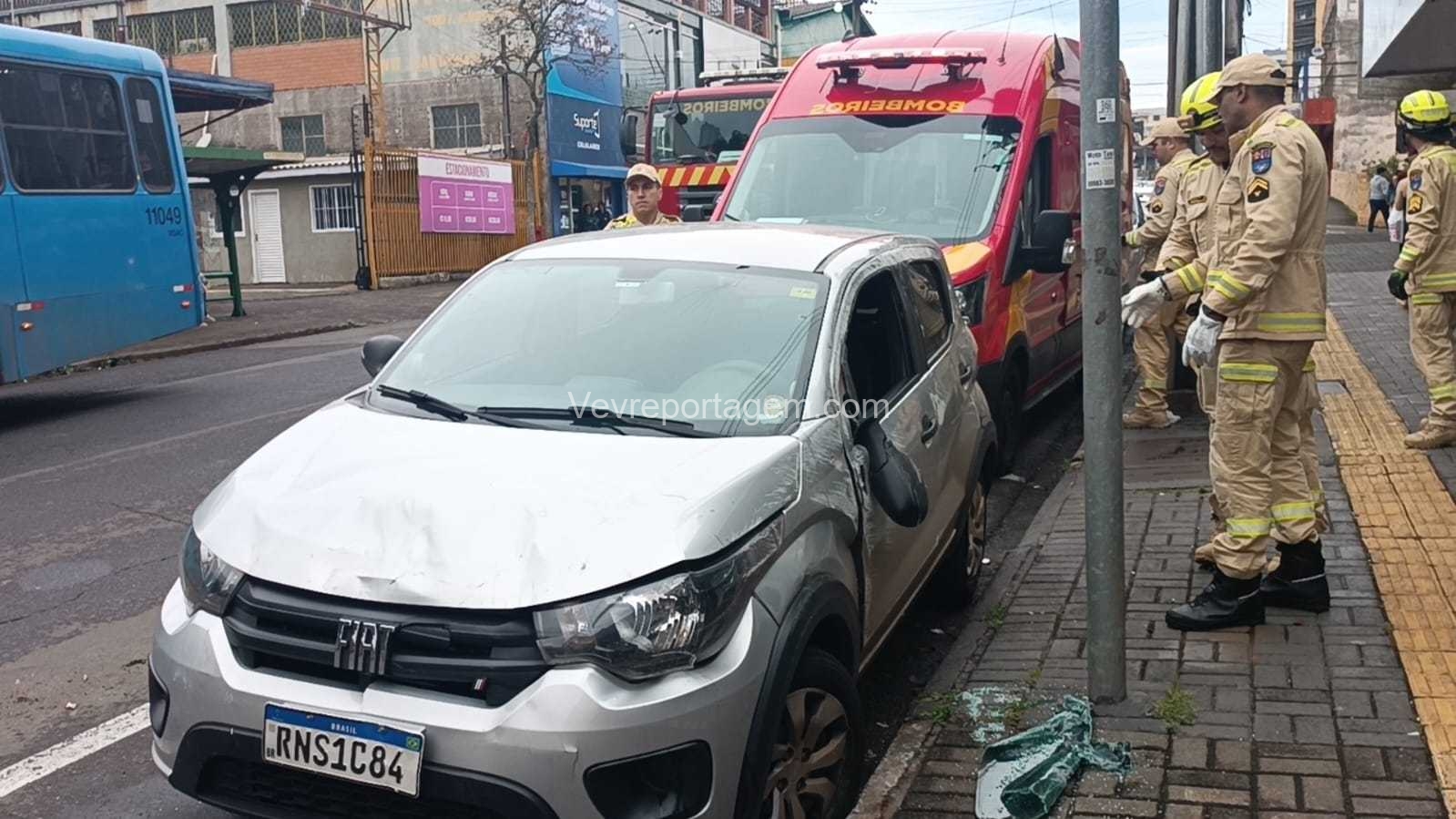 Segundo informações apuradas no local, a motorista de um automóvel transitava pela faixa da esquerda quando um outro veículo tentou realizar uma ultrapassagem, resultando em uma colisão. Na sequência, o carro da condutora acabou batendo em um automóvel estacionado e tombando.