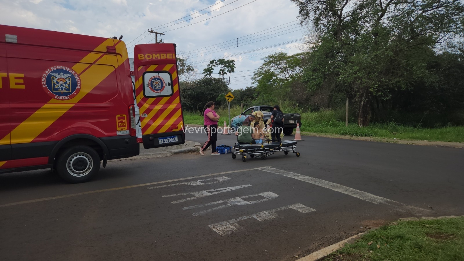 O acidente aconteceu no cruzamento da Rua Formosa com a Alameda Assaí, no Jardim Curitibano. Testemunhas informaram que o condutor tentou frear bruscamente para evitar a colisão com outro veículo, mas acabou se desequilibrando e caindo no meio do cruzamento.