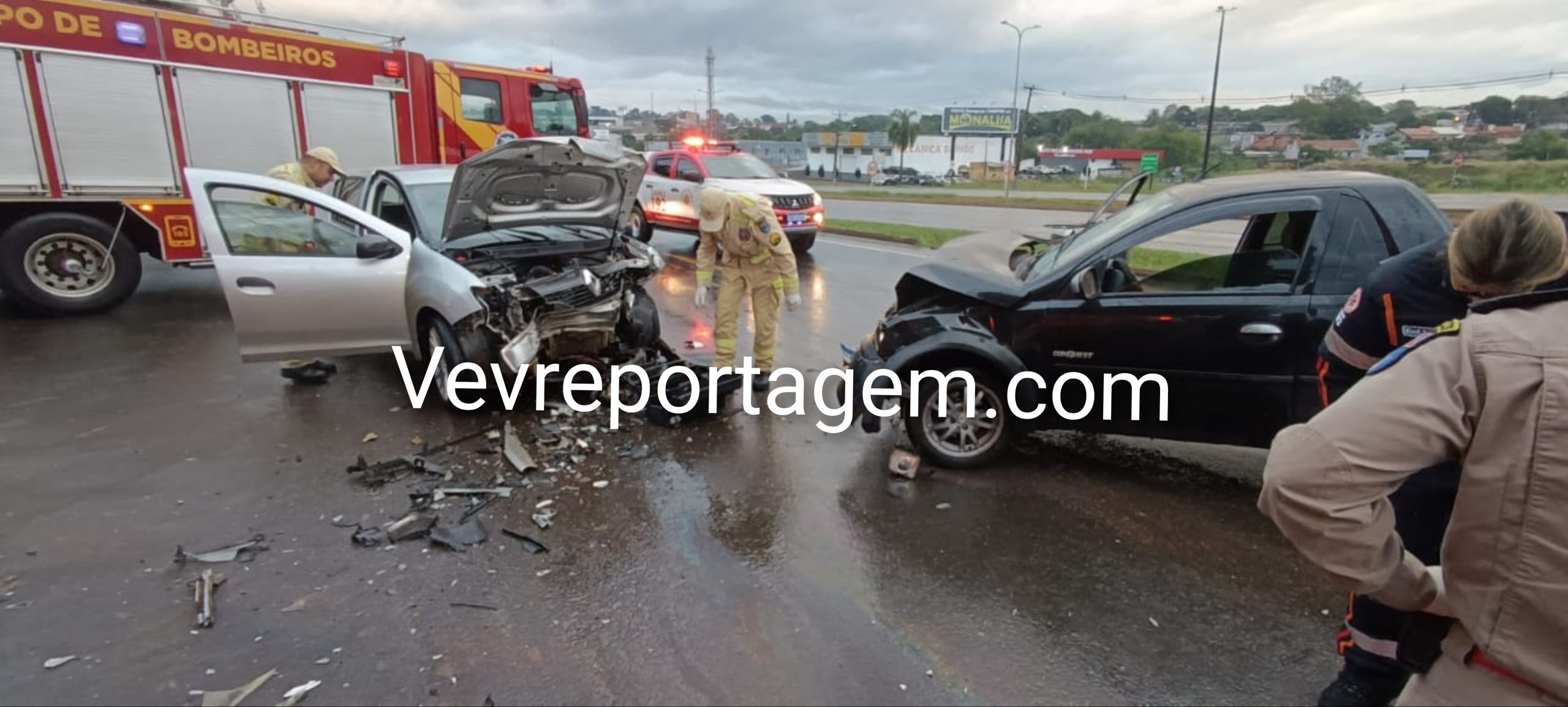 A colisão envolveu dois automóveis: uma picape Montana, ocupada por um homem e uma mulher, e um Renault, conduzido por um homem. No local, os socorristas do SIATE, com apoio do ABTR (Auto Bomba Tanque e Resgate), do Oficial de Área e da equipe médica do SAMU, prestaram os primeiros atendimentos às vítimas.