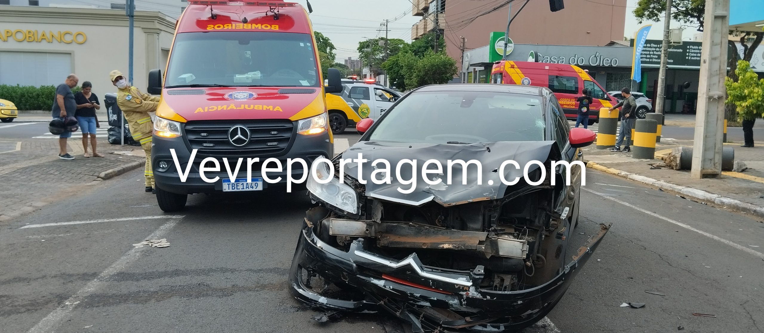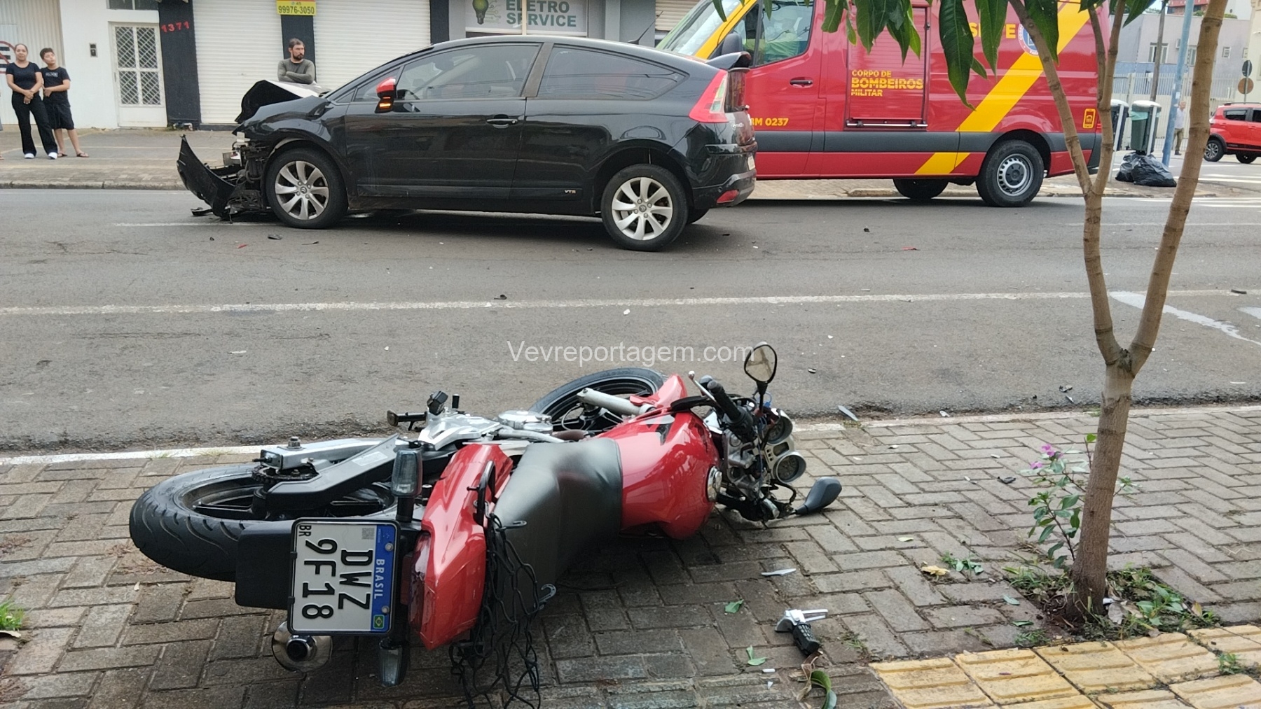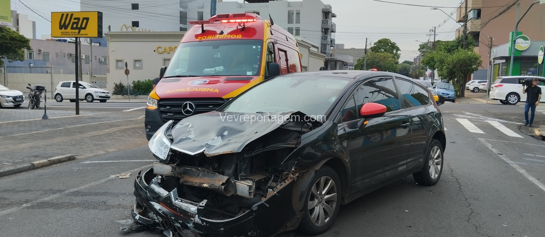 Segundo informações repassadas no local, o veículo Citroën trafegava pela Rua Xavier da Silva quando teria avançado o sinal vermelho no cruzamento com a Rua Santos Dumont, atingindo a motocicleta, uma Honda Twister utilizada para transporte por aplicativo. O condutor realizava uma corrida e levava uma passageira no momento do acidente.