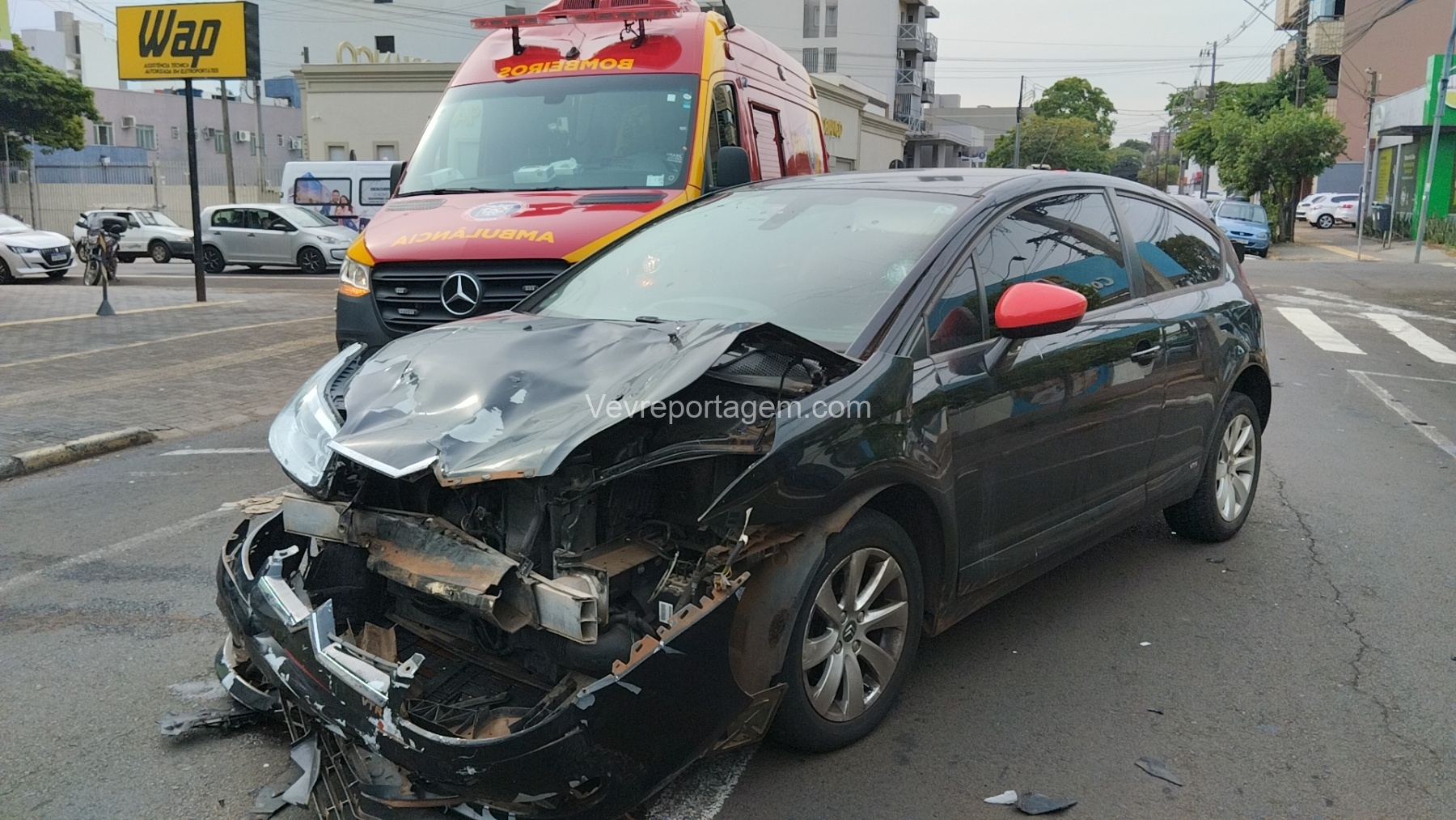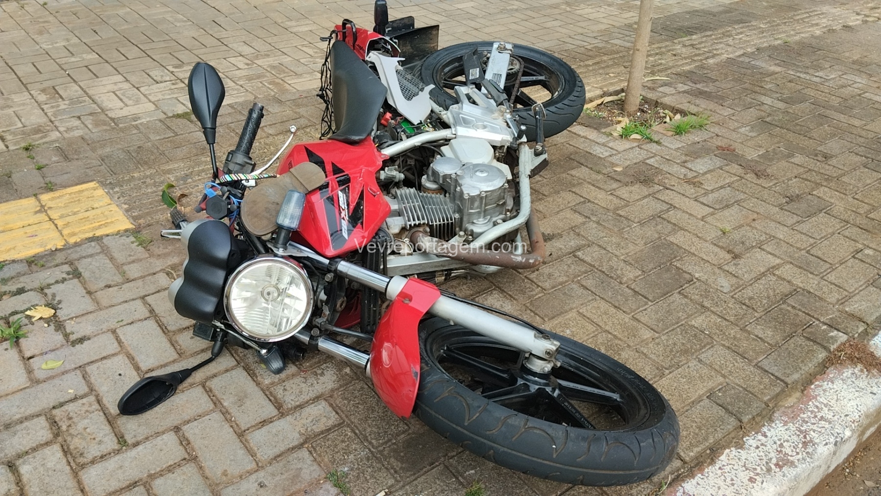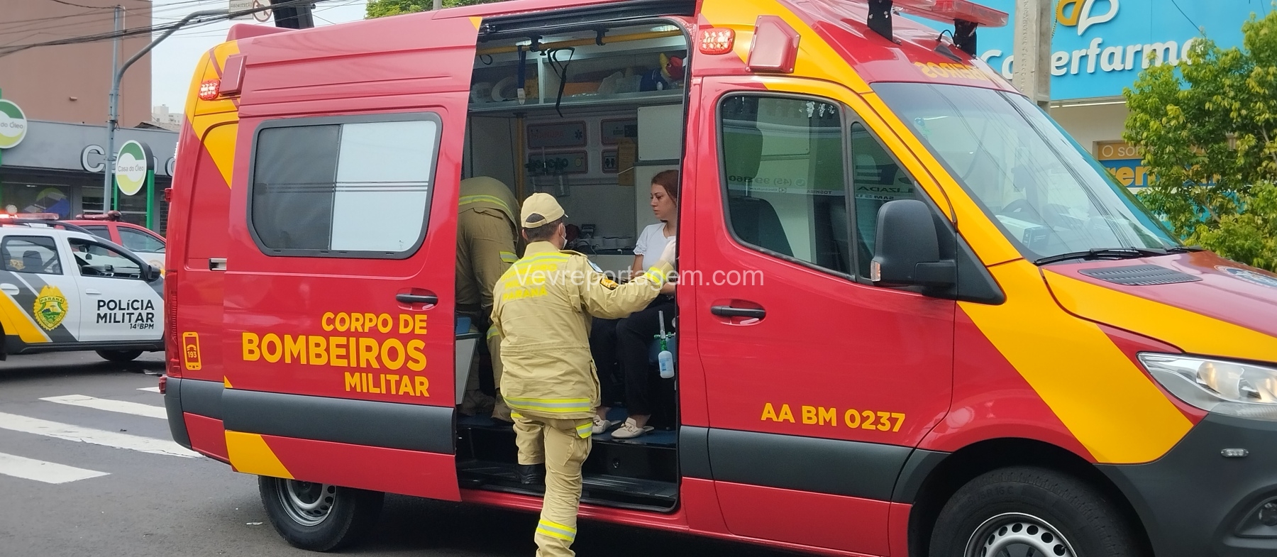 Segundo informações repassadas no local, o veículo Citroën trafegava pela Rua Xavier da Silva quando teria avançado o sinal vermelho no cruzamento com a Rua Santos Dumont, atingindo a motocicleta, uma Honda Twister utilizada para transporte por aplicativo. O condutor realizava uma corrida e levava uma passageira no momento do acidente.