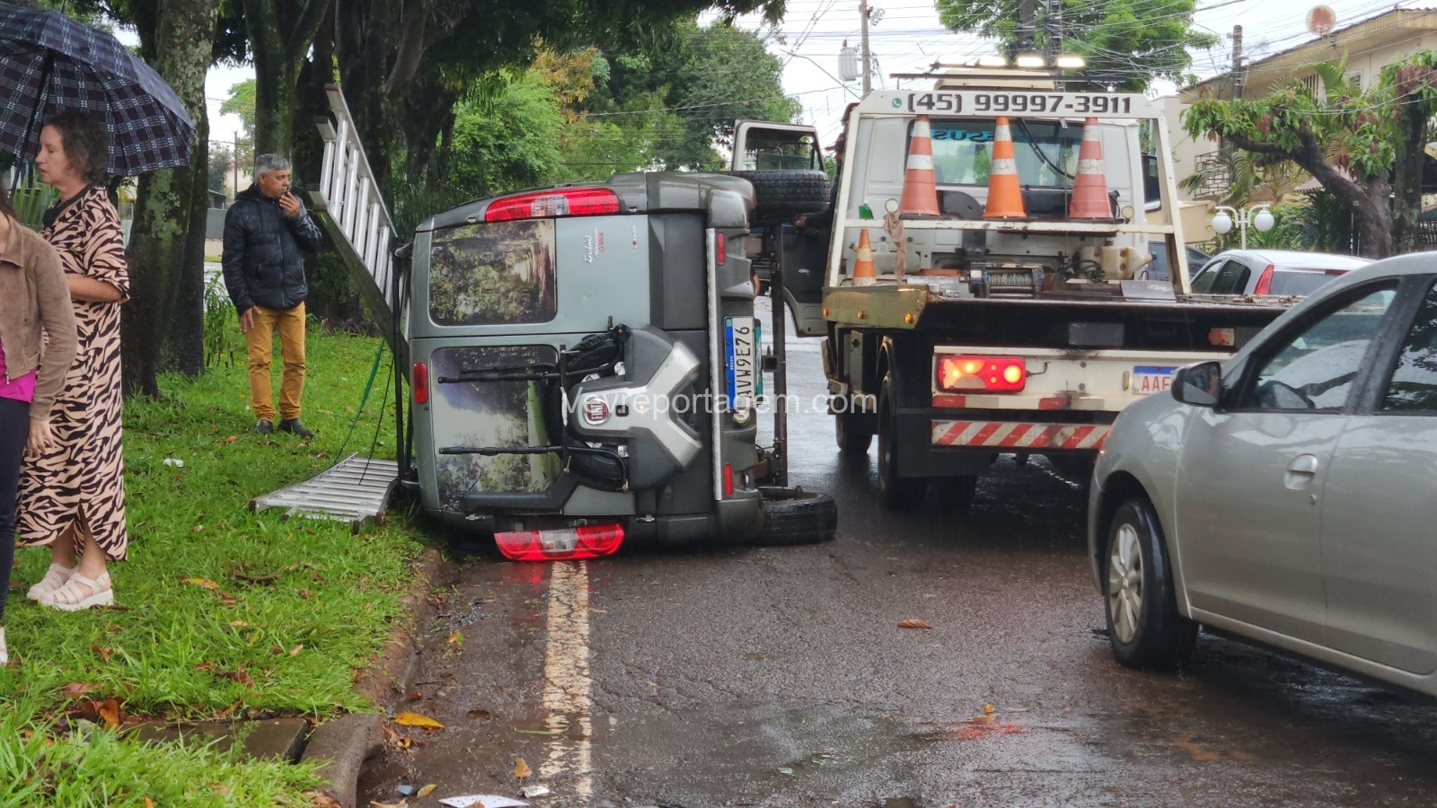 No momento do acidente chovia, o que pode ter contribuído para a gravidade da batida. O trânsito na Avenida João Paulo Segundo precisou ser desviado até a retirada dos veículos, principalmente da caminhonete tombada.