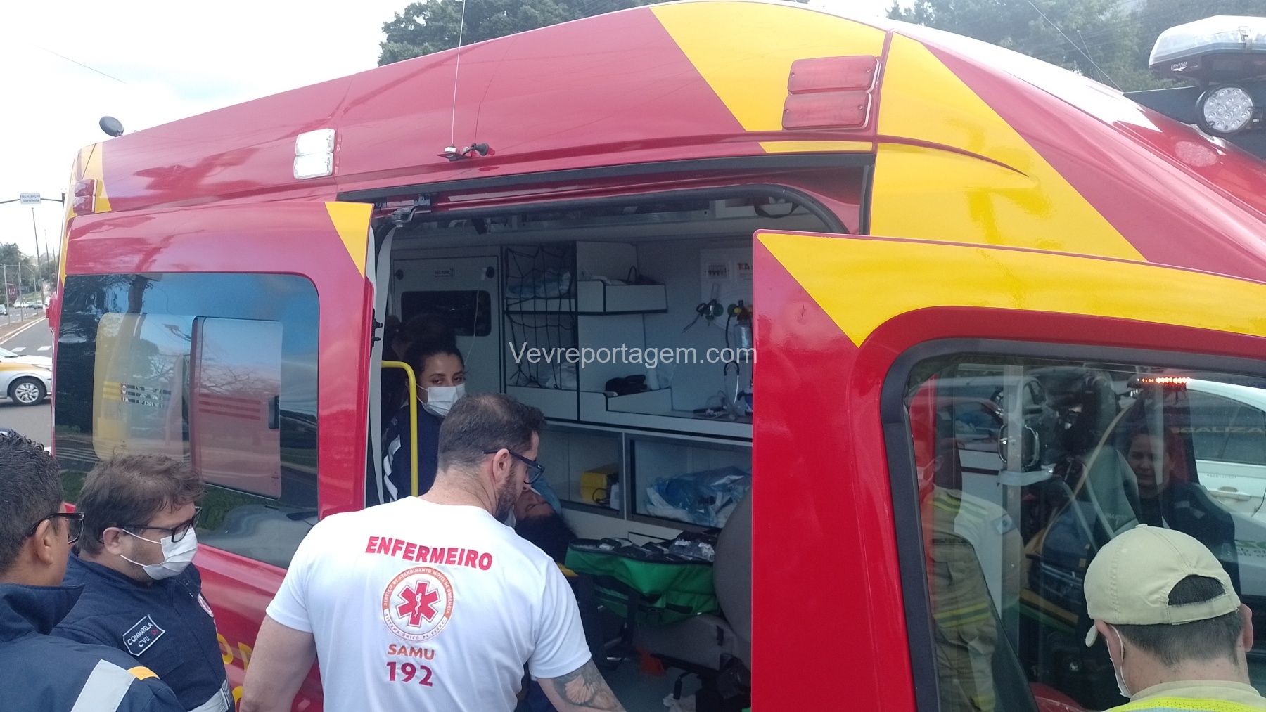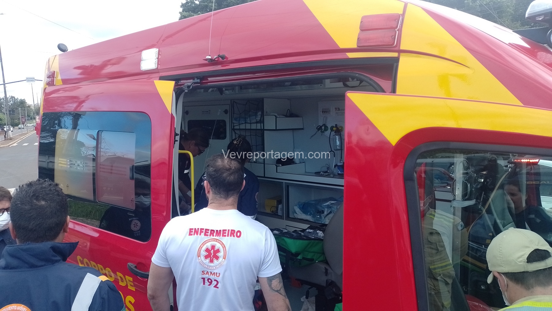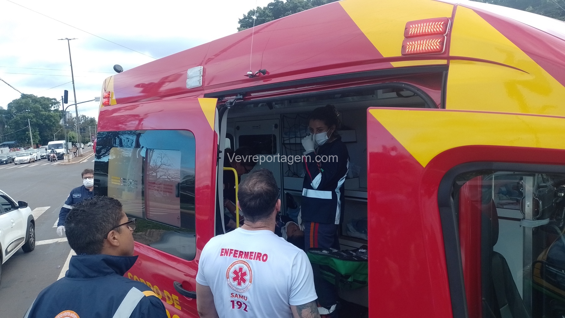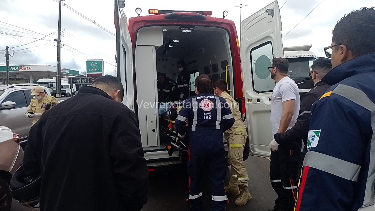 De acordo com informações dos socorristas do SIATE (Serviço Integrado de Atendimento ao Trauma em Emergência) e com o apoio médico do SAMU (Serviço de Atendimento Móvel de Urgência), a motocicleta transportava um casal no momento da colisão. A mulher caiu ao solo com ferimentos e o homem, que também estava na moto, apresentava escoriações leves e caminhava pelo local.
