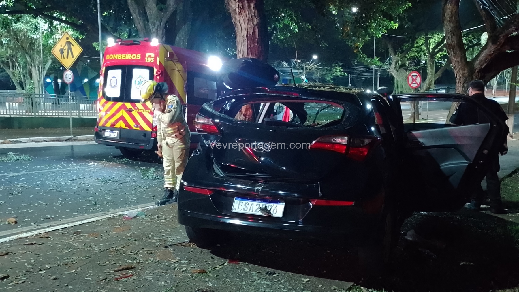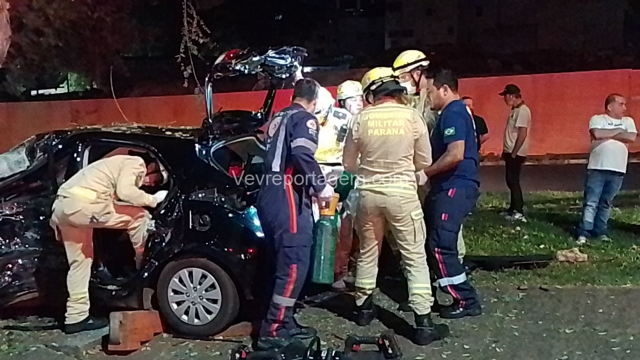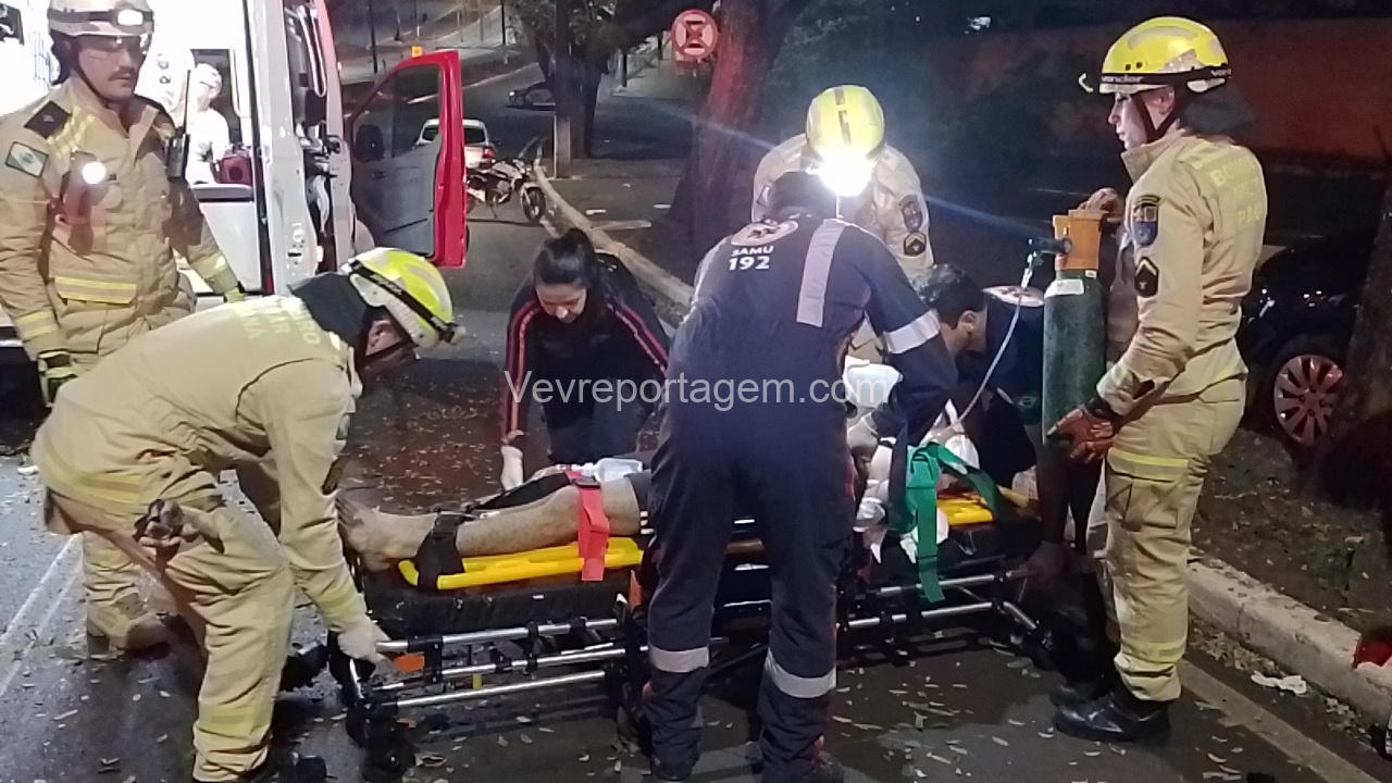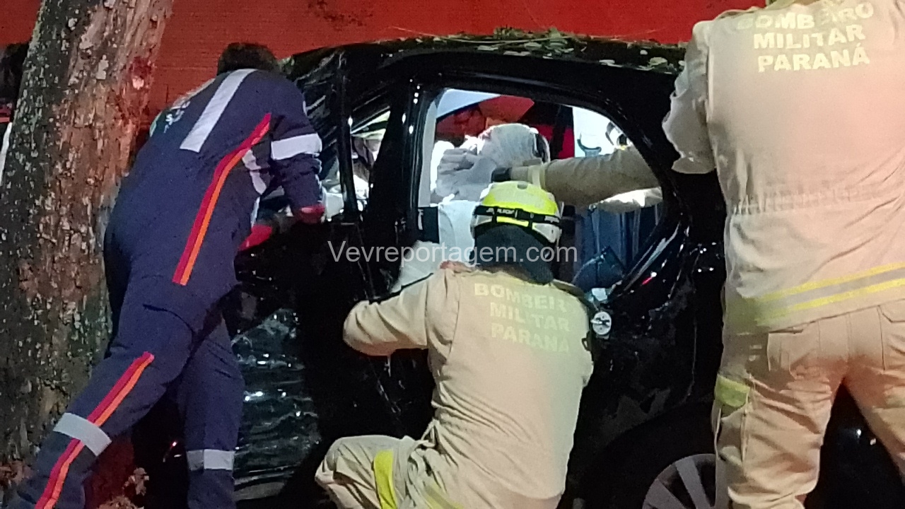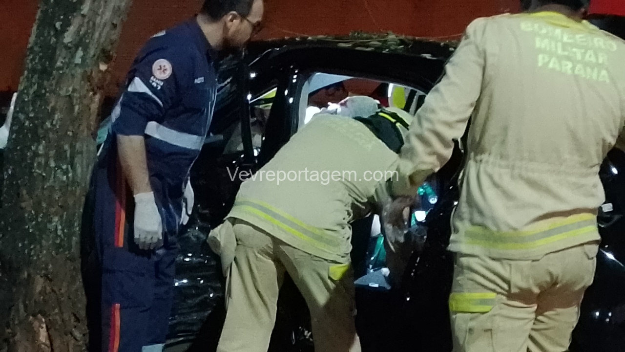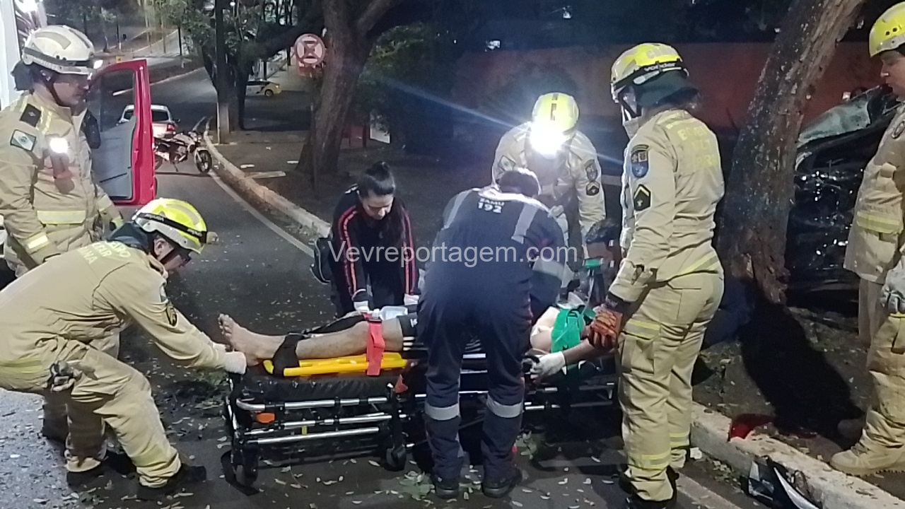 Na madrugada desta sexta-feira (19), um grave acidente de trânsito foi registrado na Avenida JK, nas proximidades da antiga Caixa Econômica. Um automóvel HB20 com três ocupantes perdeu o controle e colidiu violentamente contra uma árvore.