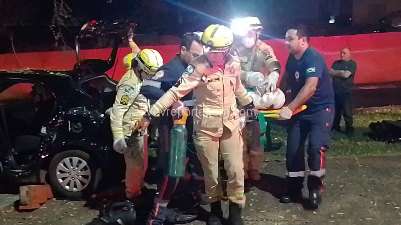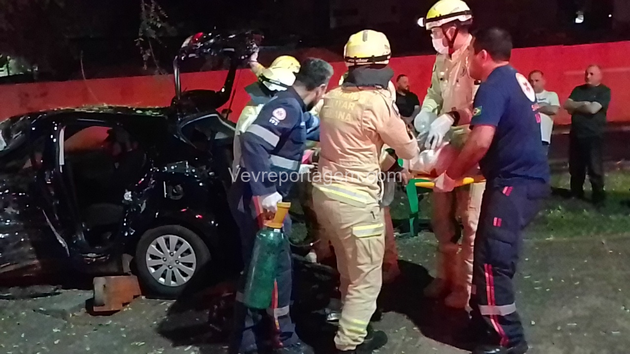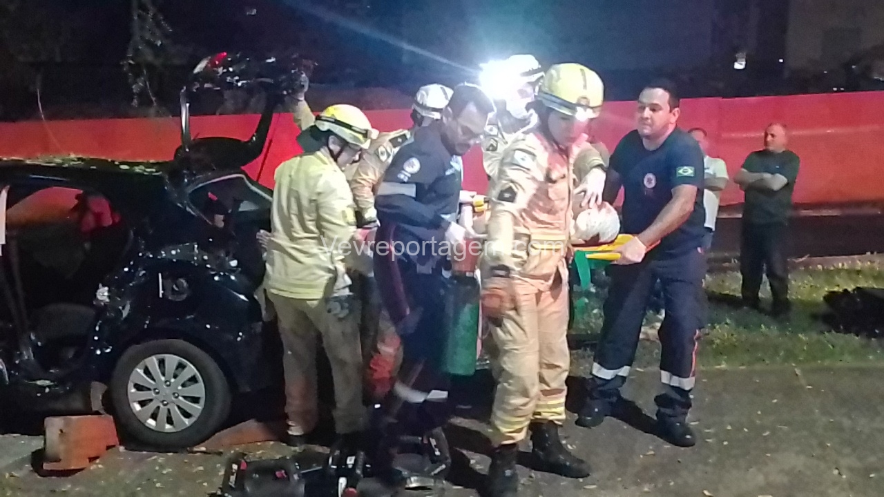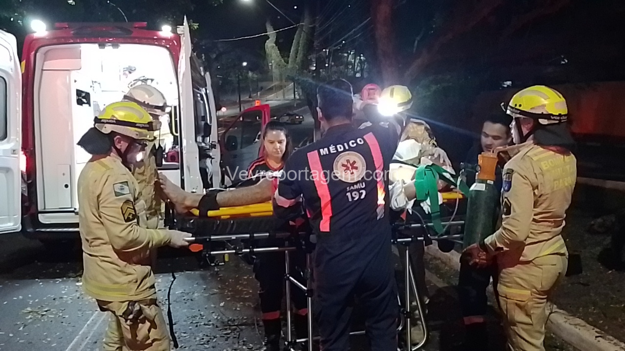Os bombeiros iniciaram os trabalhos de desencarceramento e conseguiram retirar primeiramente os dois passageiros, que apresentavam ferimentos moderados e foram encaminhados para as ambulâncias do SIAT e do SAMU. O motorista, gravemente ferido, só pôde ser retirado após intenso trabalho da equipe. Ele recebeu atendimento médico ainda no local e, em seguida, foi levado em estado gravíssimo para o Hospital Municipal.