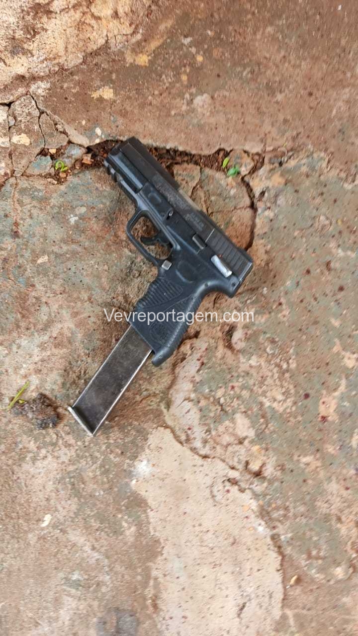 O homem acabou sendo alvejado com ele estava uma pistola calibre 9 mm com carregador alongado. Foi acionado o apoio do socorrista do Siate que chegaram no local constataram que o indivíduo se encontrava em óbito.