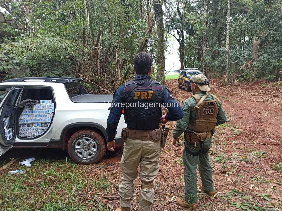 O veículo localizado estava completamente carregado com cigarros contrabandeados, totalizando 15 mil maços. O carro utilizado era clonado e estava com as placas adulteradas, sendo o original de propriedade de uma empresa de locação de automóveis.