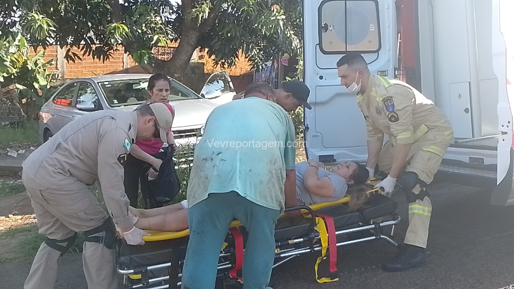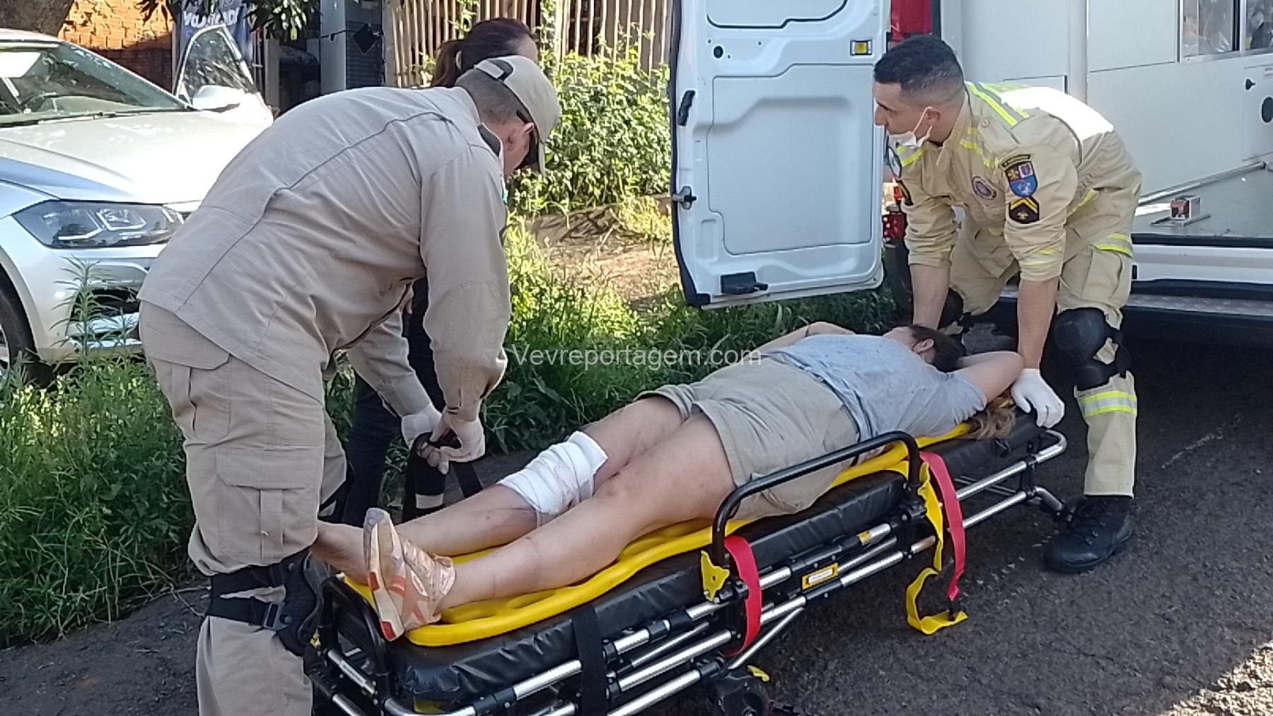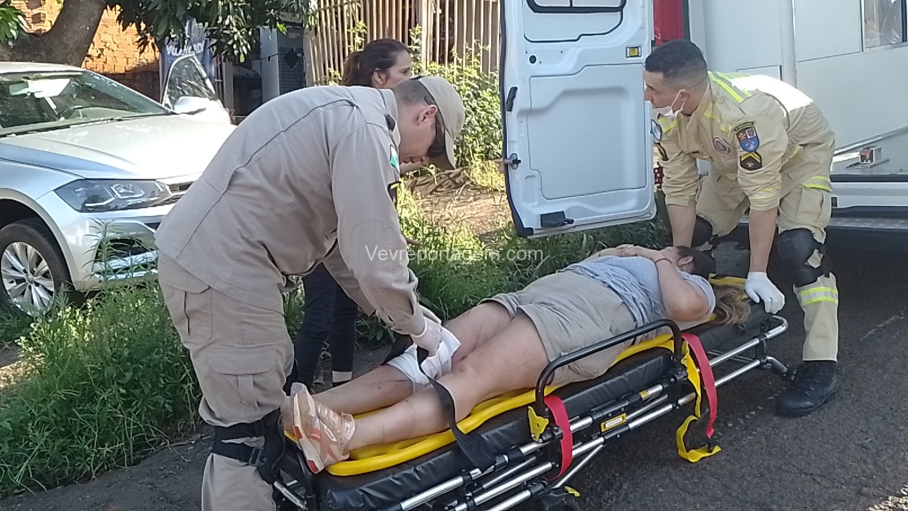 No local, os socorristas encontraram uma mulher de 35 anos ferida após ser atropelada pelo próprio veículo, que acabou colidindo contra o muro e o portão de uma residência. A vítima apresentava um corte contuso na perna e foi encaminhada ao Hospital Municipal pelo Siate para uma avaliação mais detalhada.