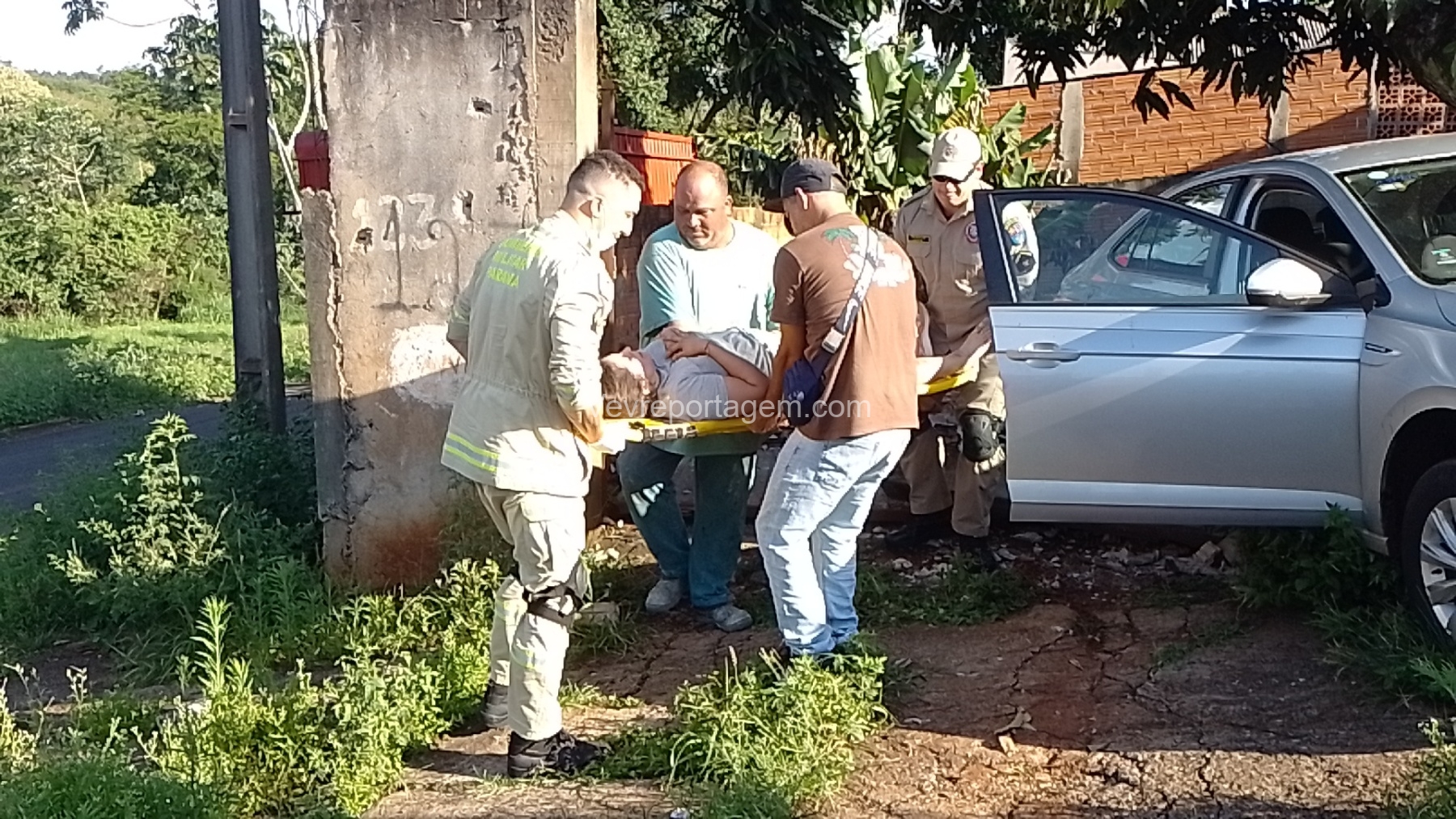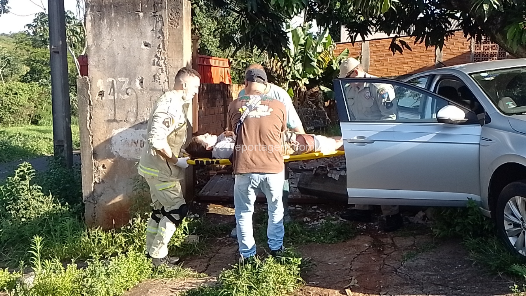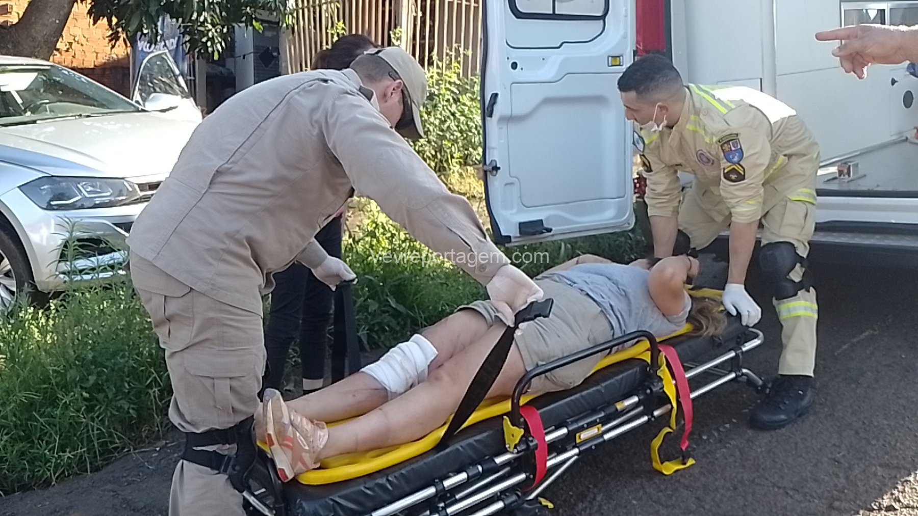 No local, os socorristas encontraram uma mulher de 35 anos ferida após ser atropelada pelo próprio veículo, que acabou colidindo contra o muro e o portão de uma residência. A vítima apresentava um corte contuso na perna e foi encaminhada ao Hospital Municipal pelo Siate para uma avaliação mais detalhada.