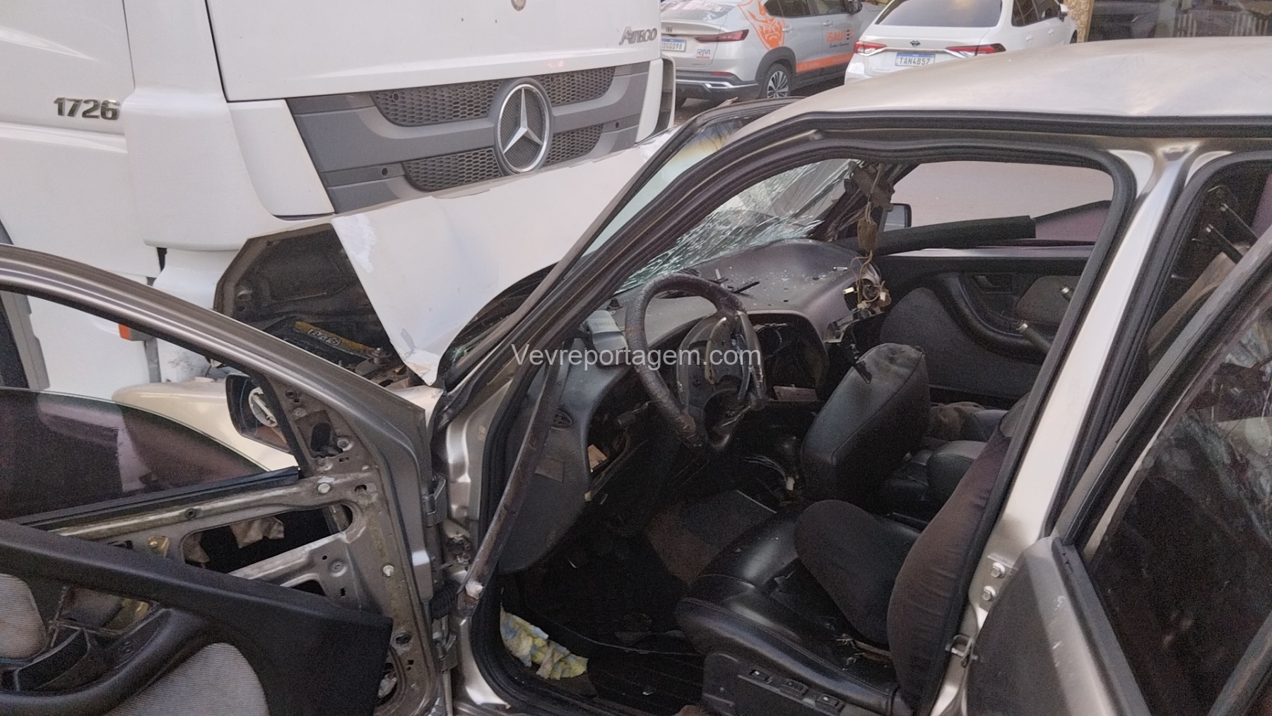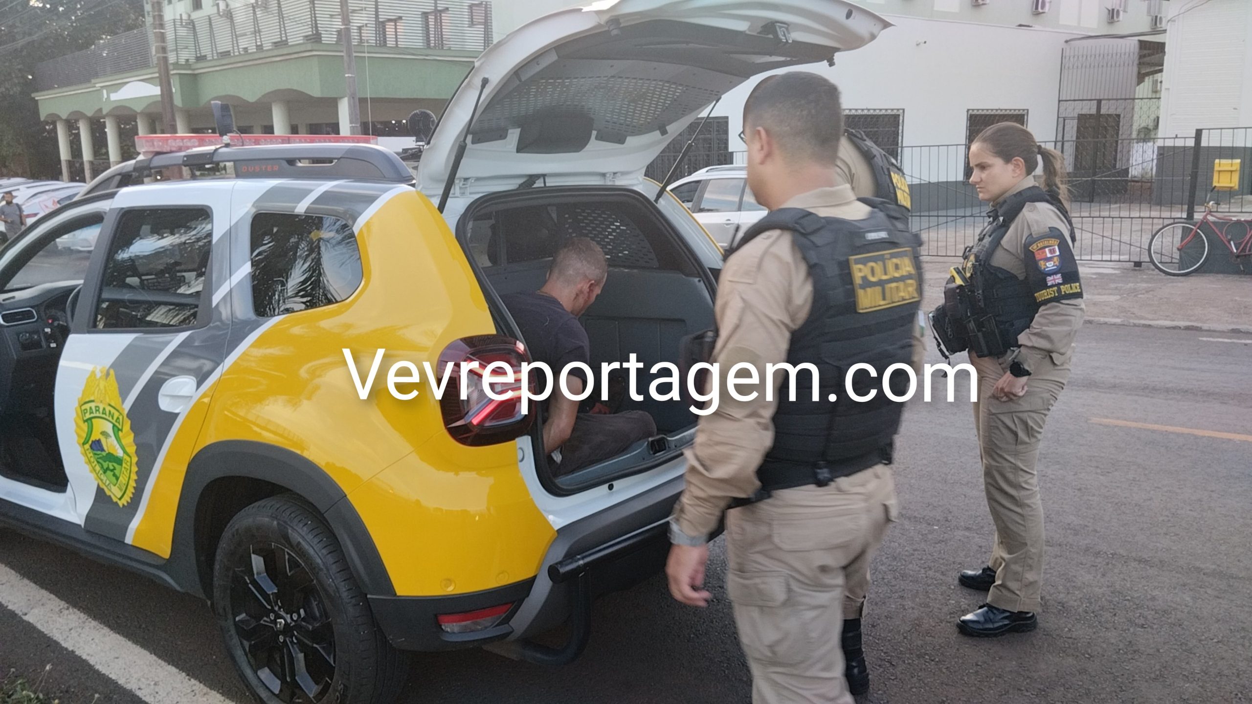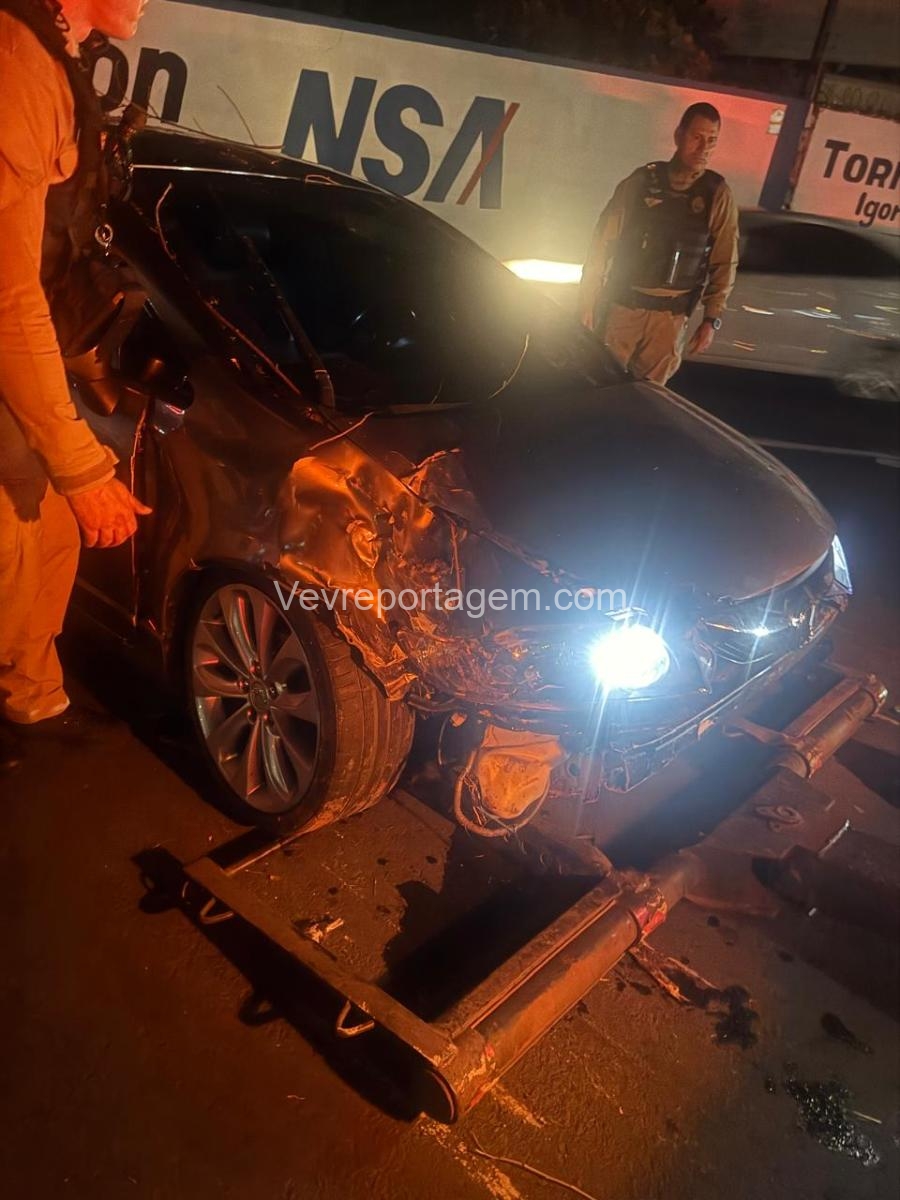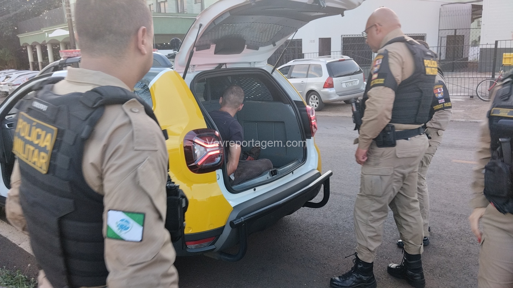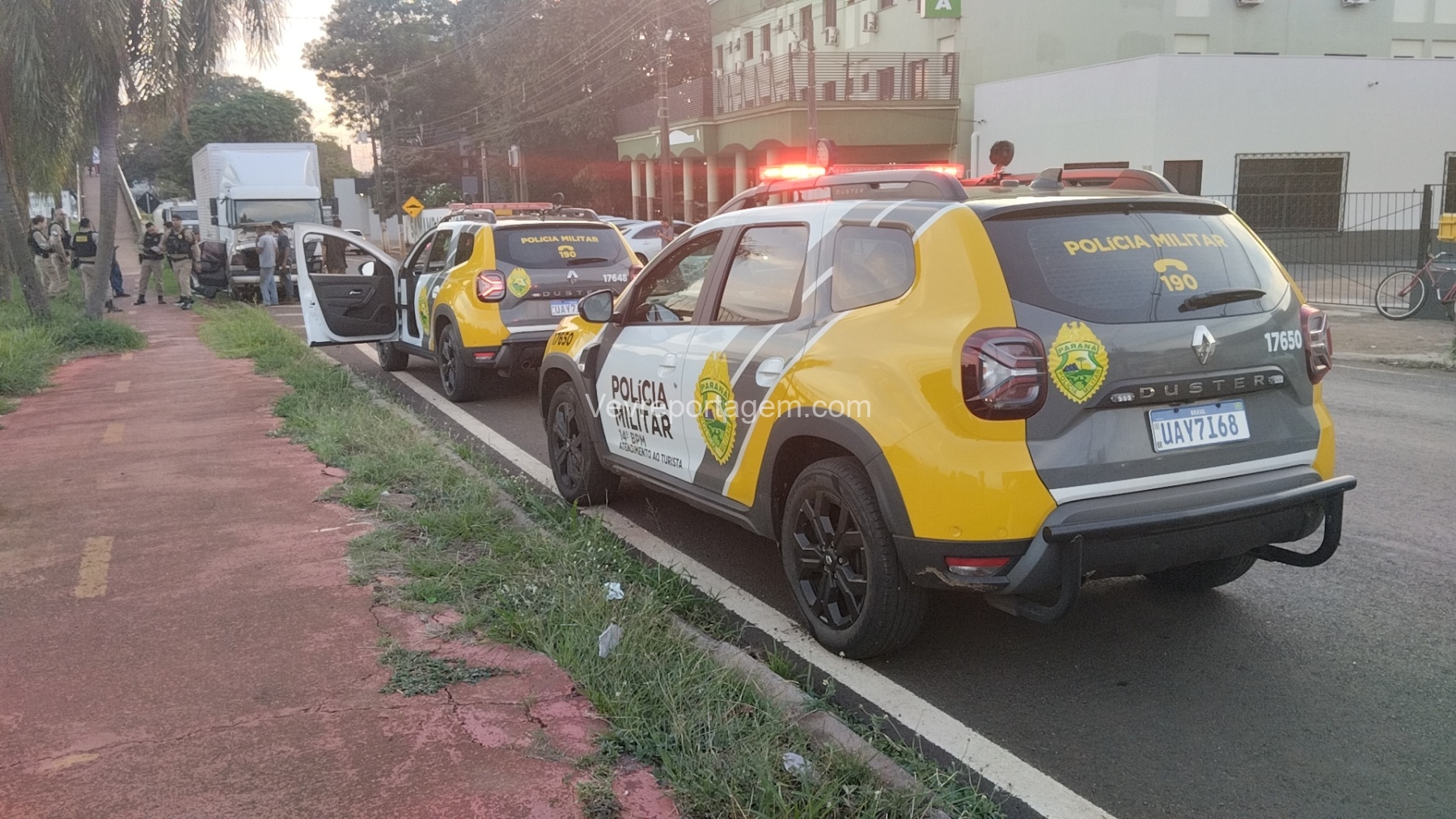 O acompanhamento terminou na Avenida Olímpio Rafagnin, onde o indivíduo colidiu frontalmente contra um caminhão estacionado em frente a um hotel, sendo então preso.