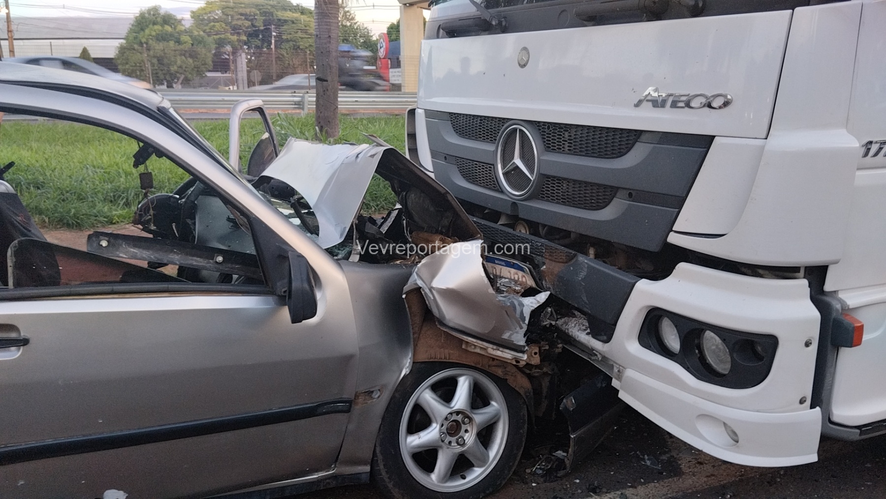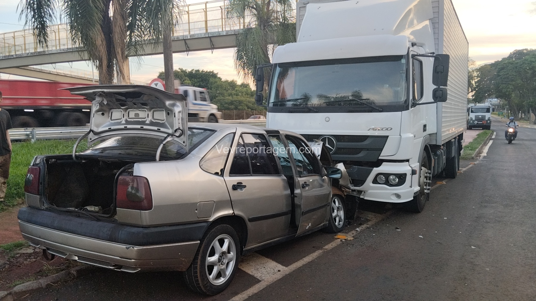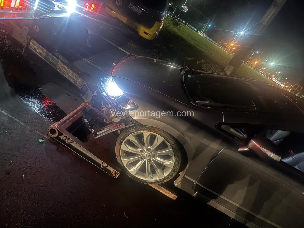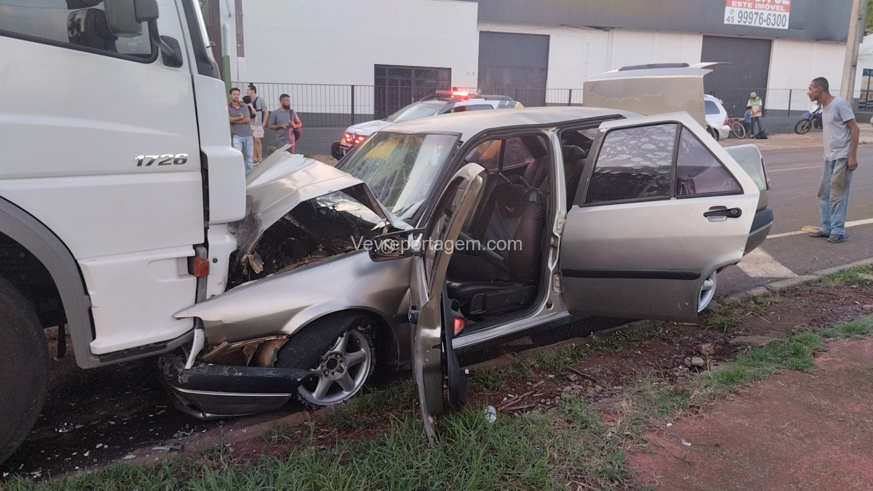O acompanhamento terminou na Avenida Olímpio Rafagnin, onde o indivíduo colidiu frontalmente contra um caminhão estacionado em frente a um hotel, sendo então preso.