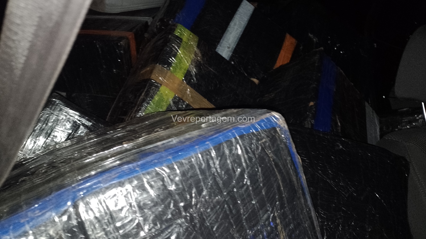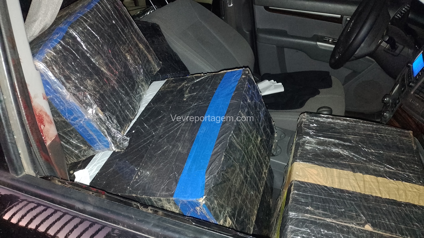 Dentro do veículo abandonado, que apresentava várias marcas de tiros, os policiais encontraram mercadorias contrabandeadas do Paraguai.