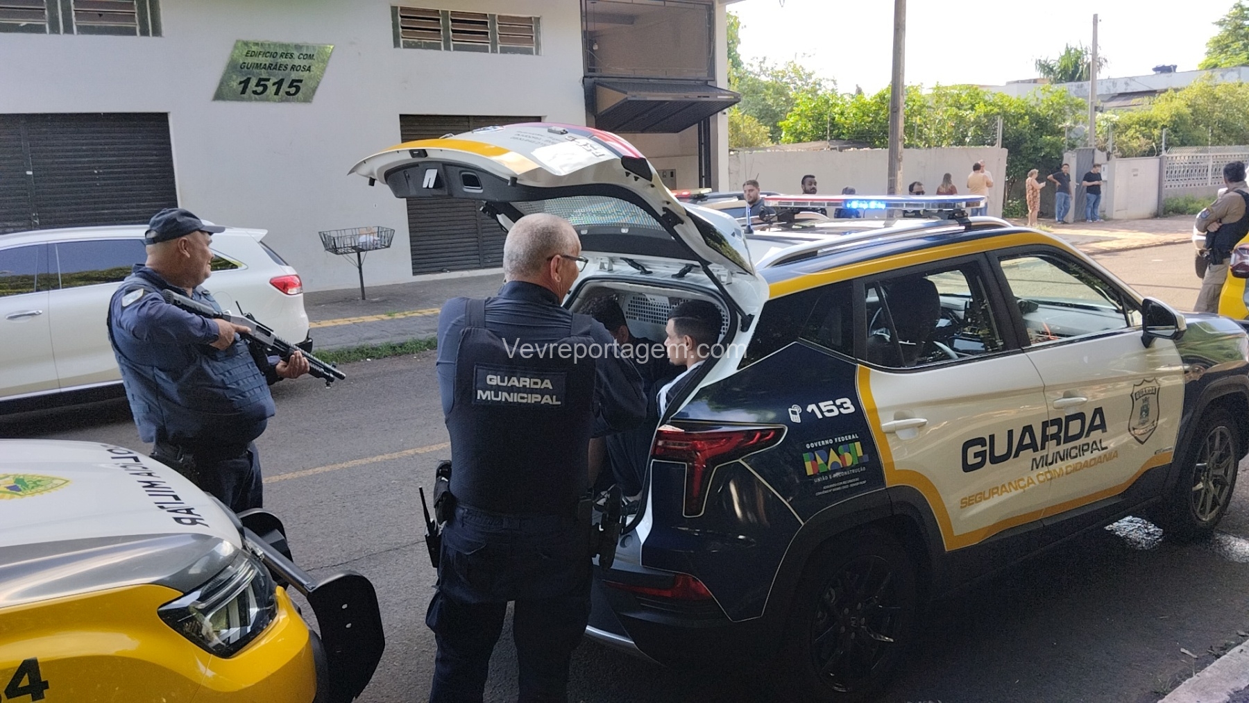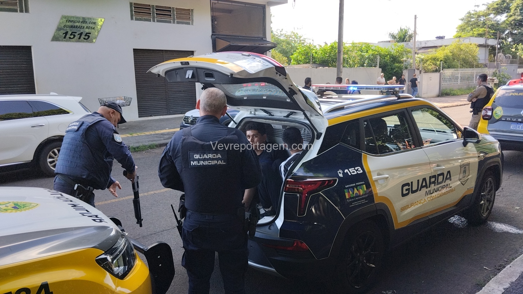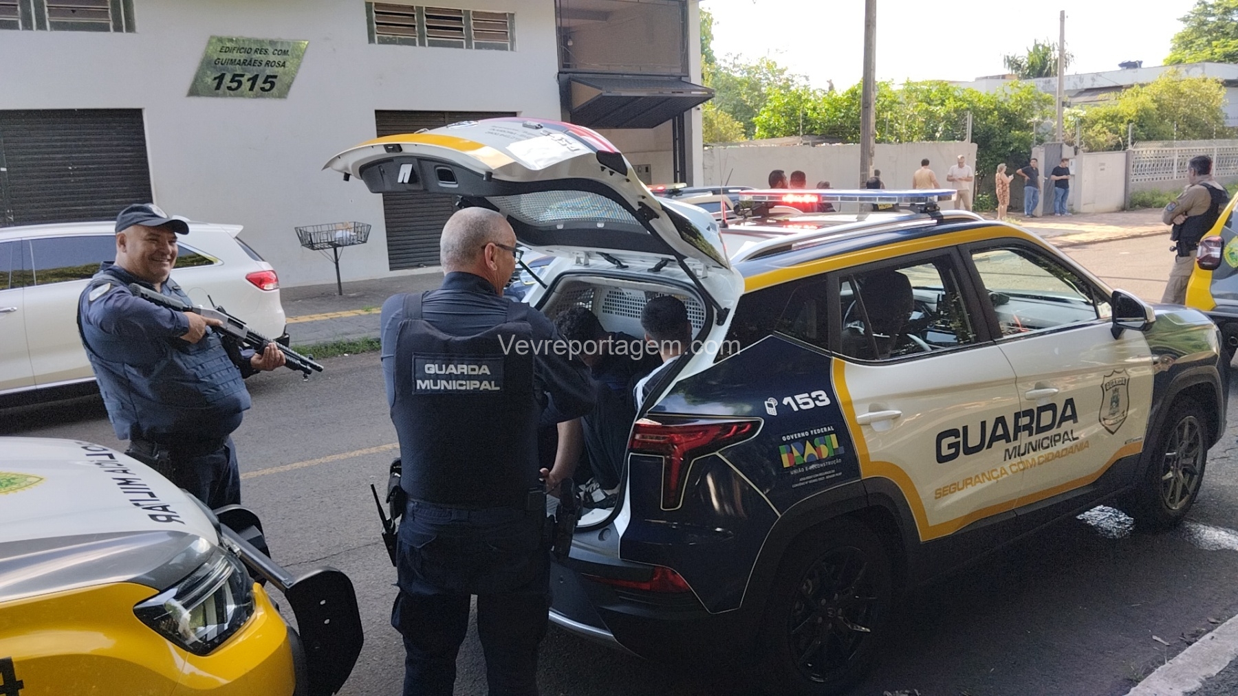 Segundas informações repassadas pelos guardas municipais, os agentes realizavam patrulhamento quando foram alertados sobre um roubo em andamento. No local, os suspeitos teriam abordado a vítima armados, anunciando o assalto no momento em que ela chegava à residência. A ação criminosa não foi consumada devido ao veículo da vítima ser blindado.