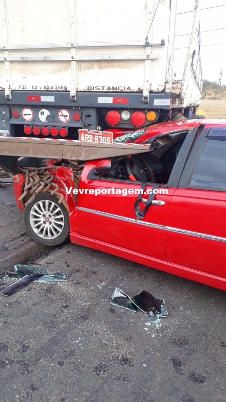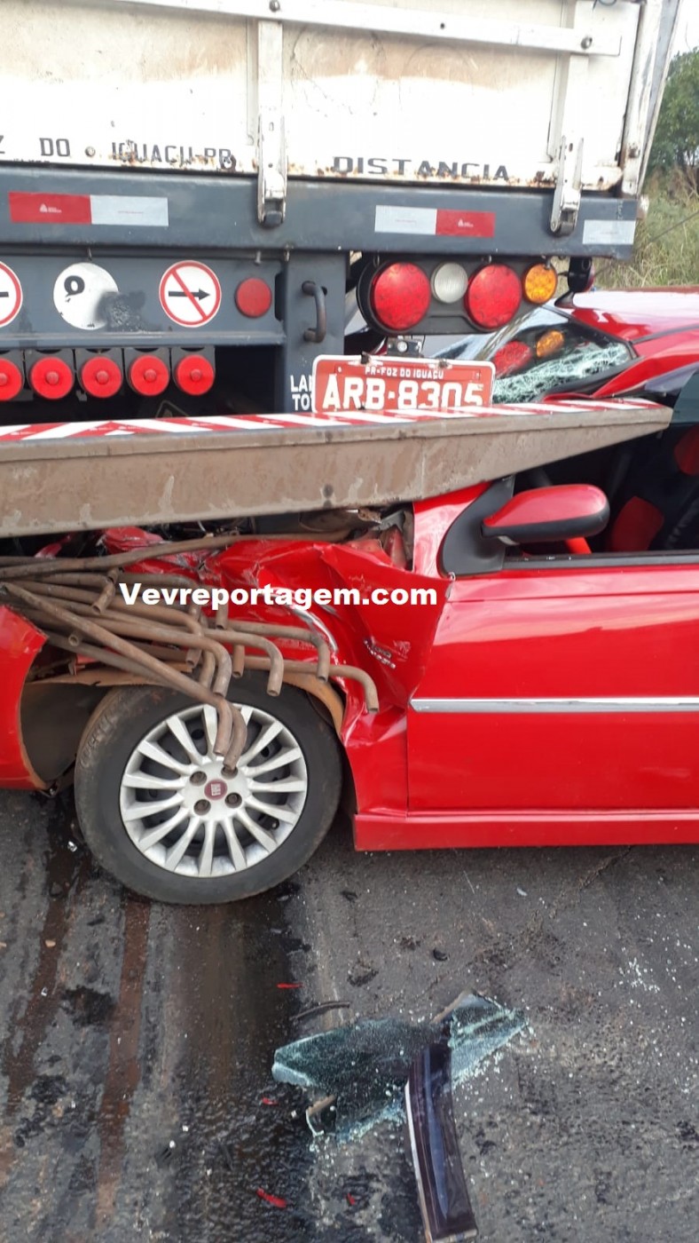 O acidente aconteceu na BR-277 proximidades do posto paradão, o carreta estava fazendo no contorno quando o veículo veio e acabou colidindo e ficando debaixo da carreta o veículo.