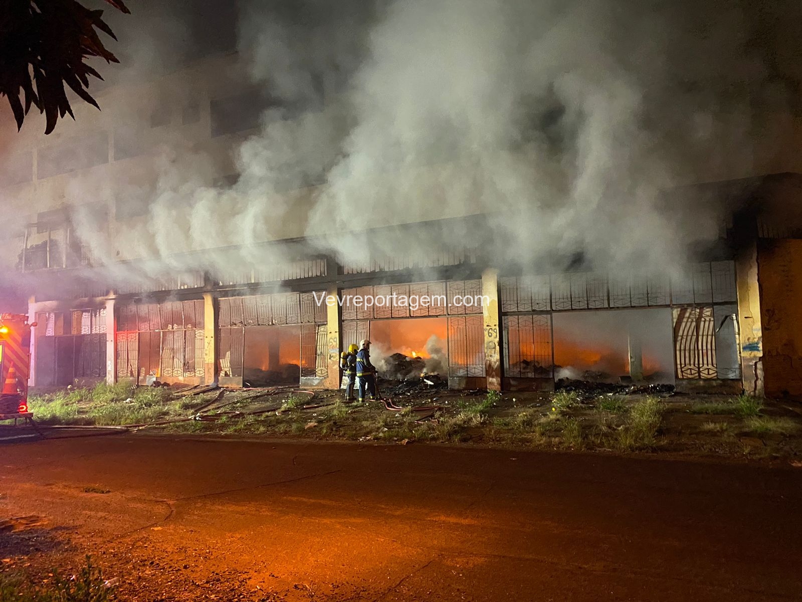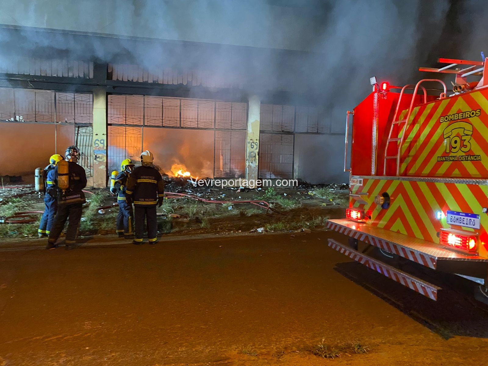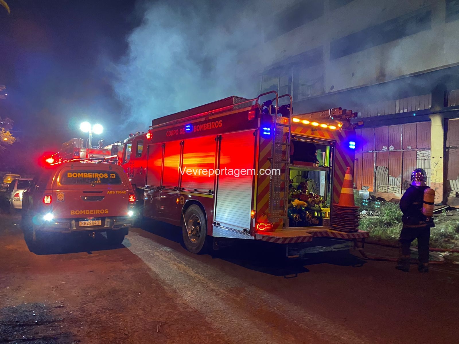 Os bombeiros tiveram bastante trabalho para conter as chamas, quando apagavam a parte de cima, daí a parte de embaixo tinha chamas ainda, porque tinha muito plástico e outros tipos de matérias que facilitam o aumento das chamas.
