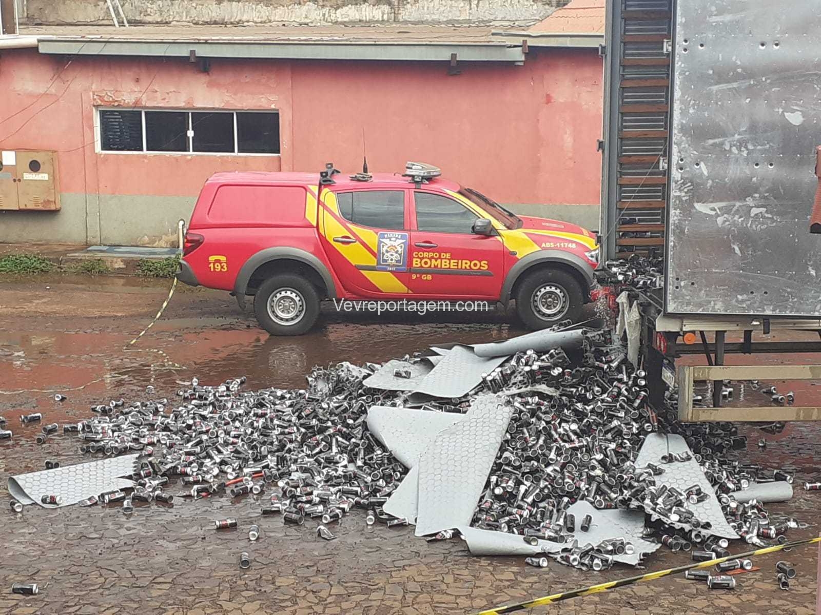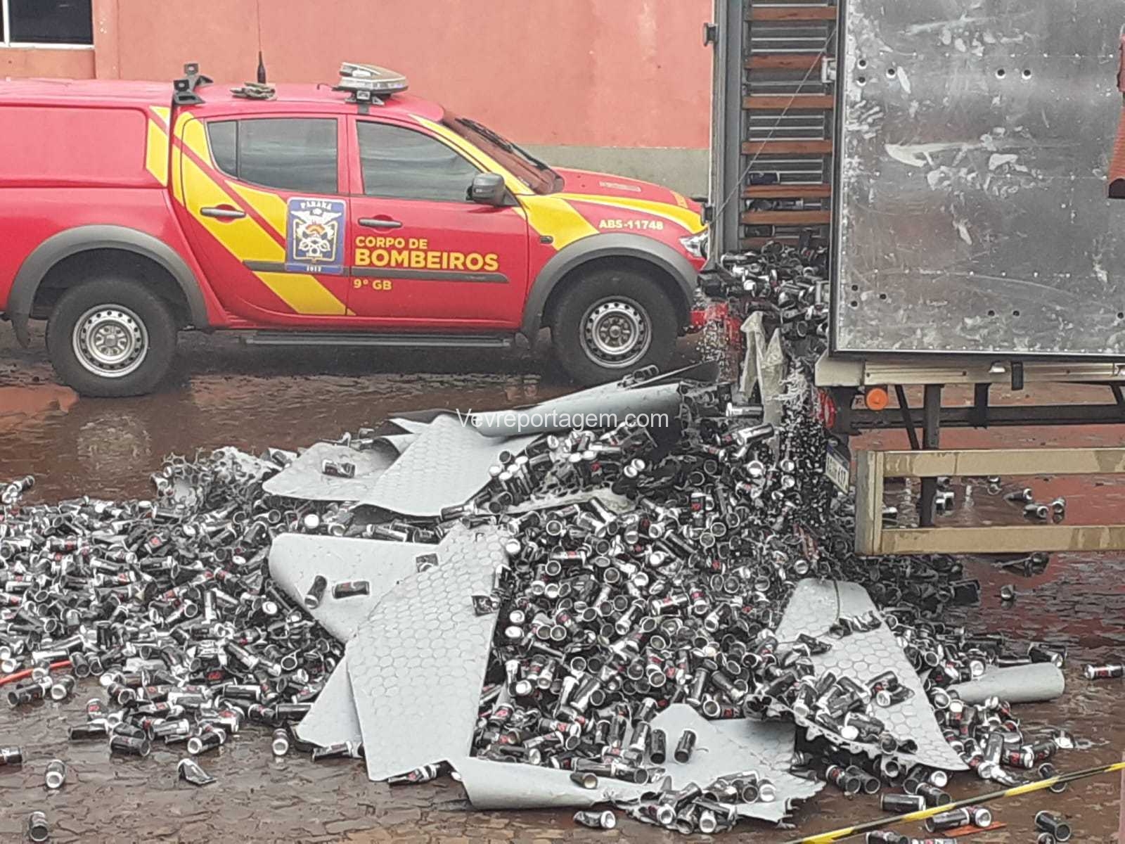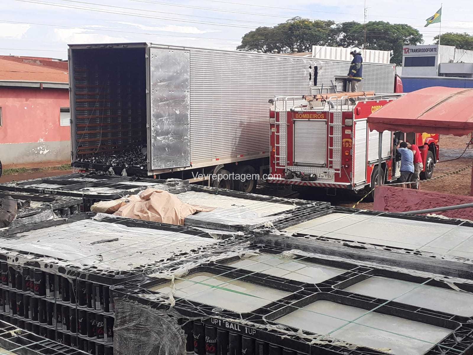 No local, foi constatado a ocorrência, porém o incêndio já tinha cido controlado por terceiros. Os bombeiros jogaram um pouco de água para refrigerar, pois as latas de cerveja vazias estavam muito quentes. O caminhoneiro disse que iria levar as latas vazias para o Paraguai.