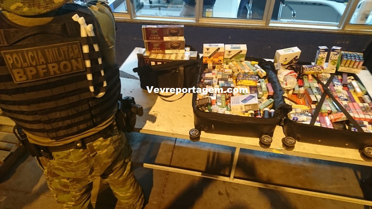 Na sexta-feira, (06/08) policiais militares do BPFRON – Batalhão de Polícia de Fronteira, realizavam patrulhamento pela cidade de Medianeira/PR, quando realizou a abordagem de um ônibus, ao vistoriar o bagageiro foi encontrado uma mala contendo cigarros eletrônicos contrabandeados e uma mochila contendo 17 (dezessete) pacotes de cigarros contrabandeados.