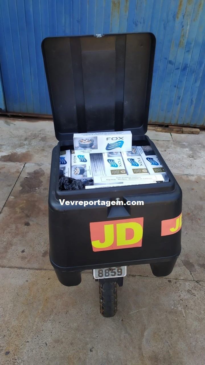Na quarta-feira, (04/08) policiais militares do BPFRON – Batalhão de Polícia de Fronteira, realizaram a abordagem a uma motocicleta, conduzida por um masculino, ao realizar a revista ao baú da motocicleta foi encontrado aproximadamente 75 (setenta e cinco) pacotes de cigarros contrabandeados.