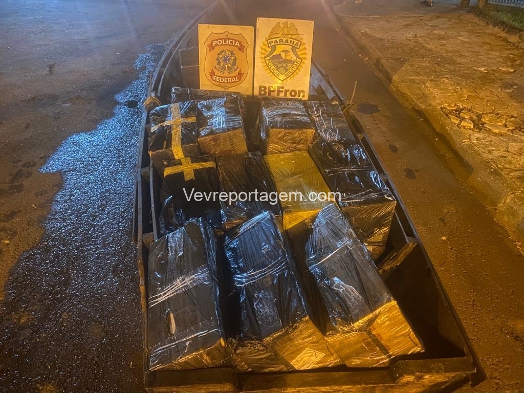 Na madrugada de quinta-feira (12/01), policiais militares do BPFRON e BOPE da Polícia Militar do Paraná em ação integrada com a Polícia Federal realizavam patrulhamento aquático em Foz do Iguaçu-PR quando avistaram uma embarcação em um porto clandestino.