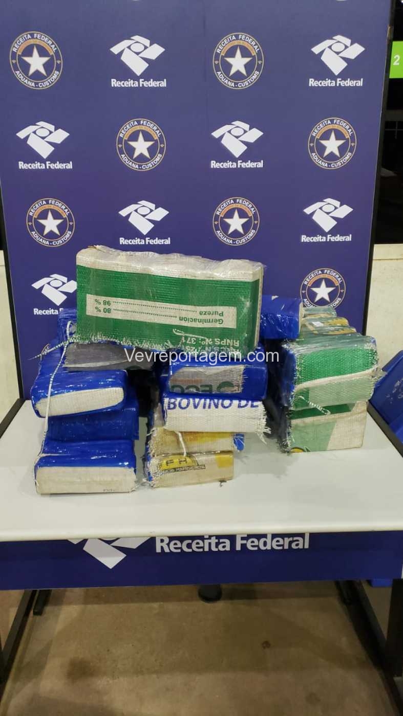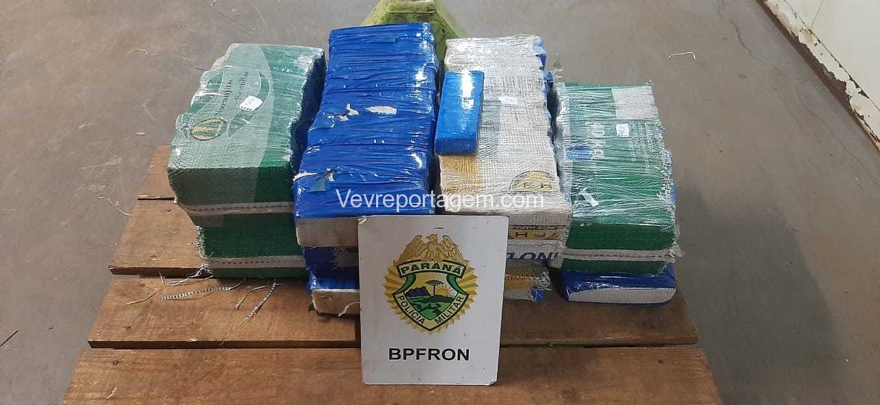 Em busca veicular foi encontrado no porta malas aproximadamente 100 quilos de substância análoga a maconha.