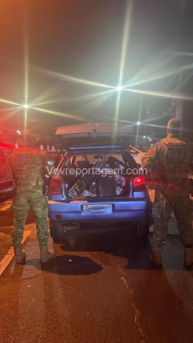 Durante patrulhamento na região central da cidade, as equipes avistaram um veículo trafegando pela contramão da via, o que motivou a abordagem. No interior do automóvel estavam dois indivíduos do sexo masculino, ambos menores de idade.