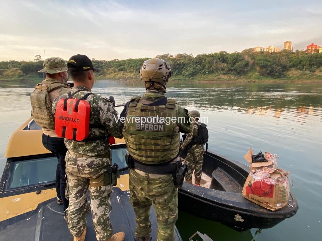 Na quinta-feira, (21/07) policiais militares do BPFRON – Batalhão de Polícia de Fronteira e policiais federais realizaram operação integrada com a Armada Paraguaia para combater o tráfico internacional de drogas, que ocorre pelo leito do Rio Paraná, em Foz do Iguaçu-PR.