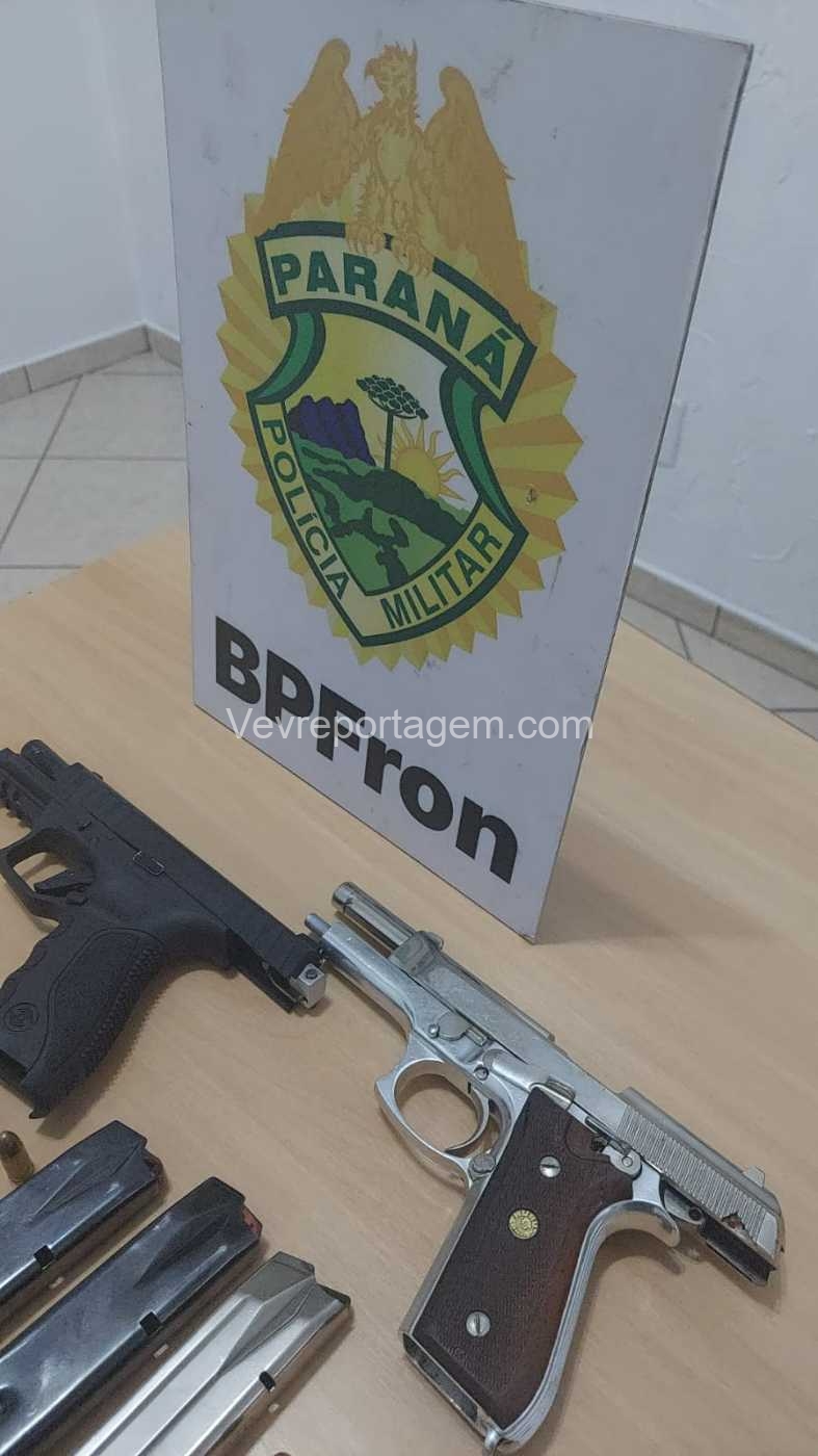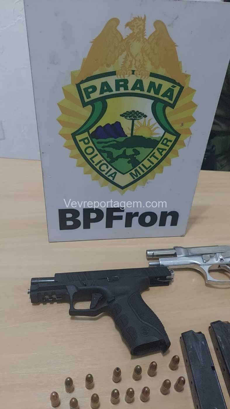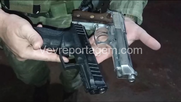 Os policiais foram atrás e conseguiram realizar abordagem, onde na residência tinha mais três indivíduos, e foi localizado duas pistolas 9mm com os mesmos.