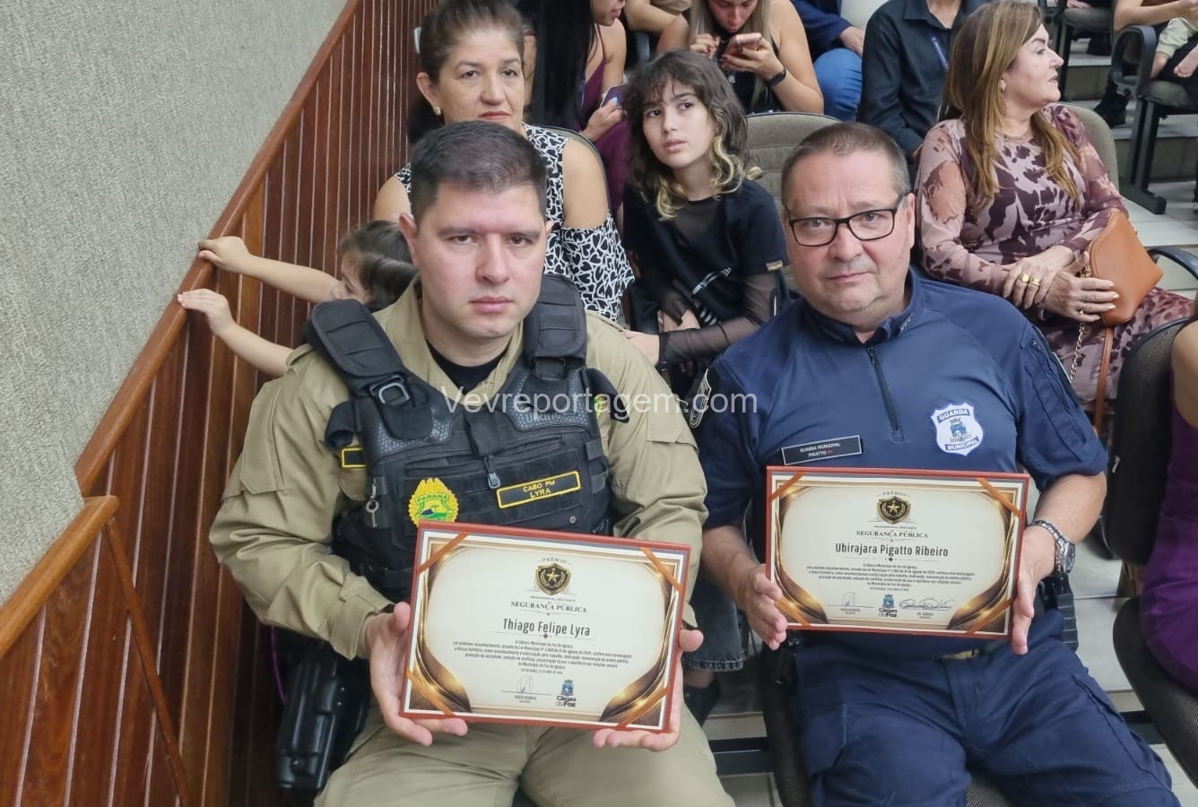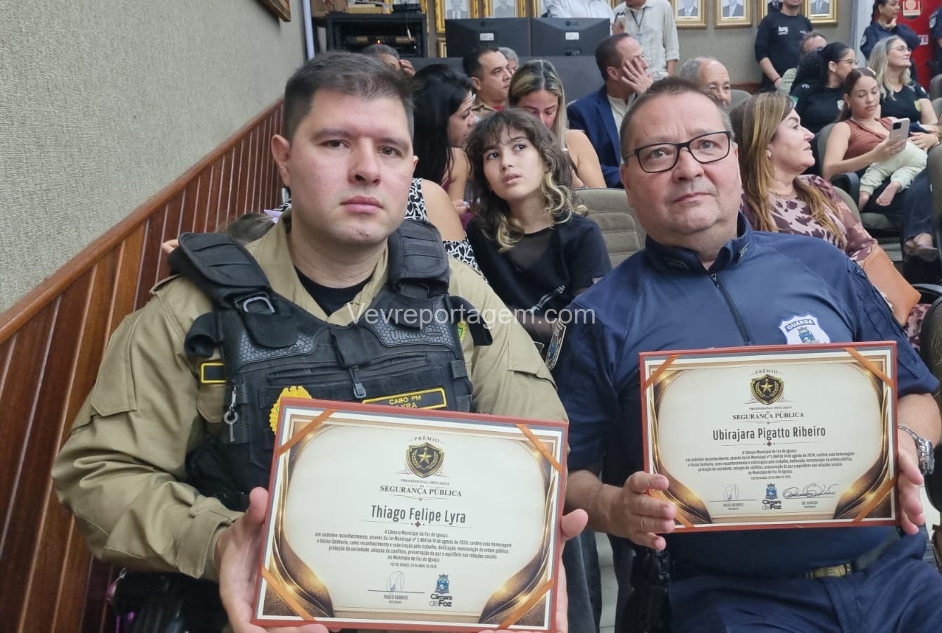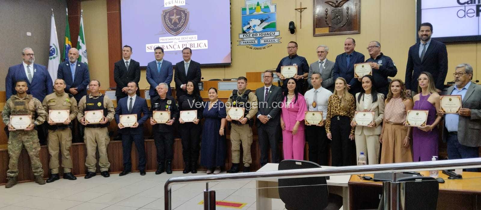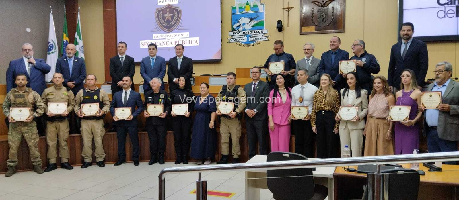A Câmara Municipal de Foz do Iguaçu realizou, na manhã desta quinta-feira (23), a cerimônia de entrega do Prêmio Profissional da Segurança Pública, uma iniciativa criada para reconhecer homens e mulheres que dedicam suas vidas à proteção da sociedade. A honraria destaca o papel essencial desses profissionais na construção de uma cidade mais segura, pautada pela justiça, pela paz social e pelo bem-estar coletivo.