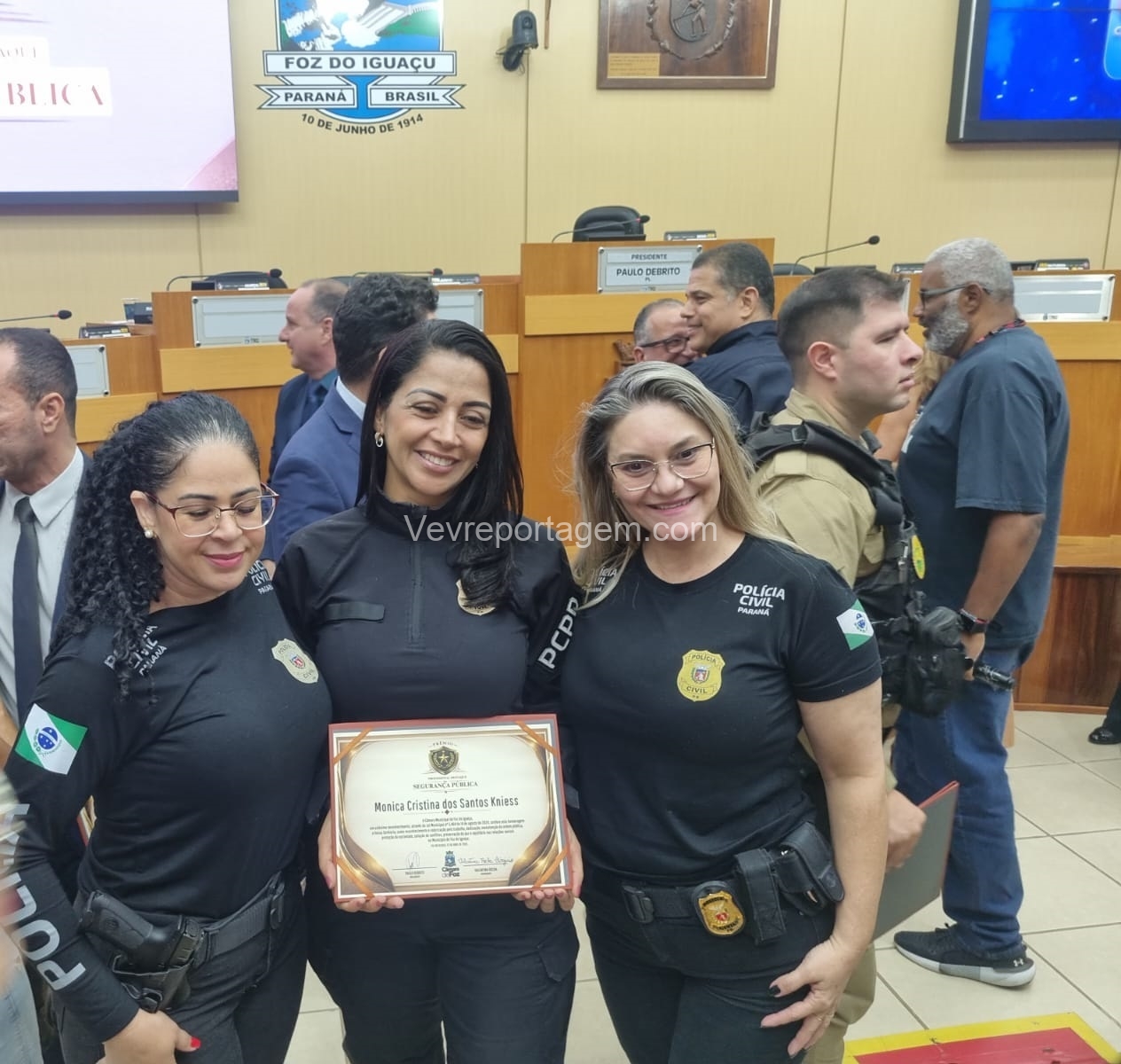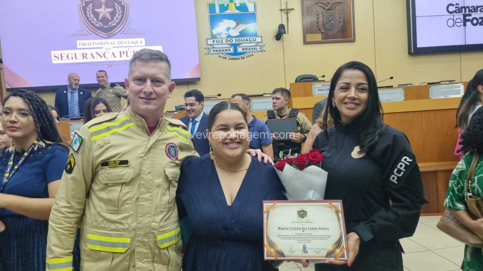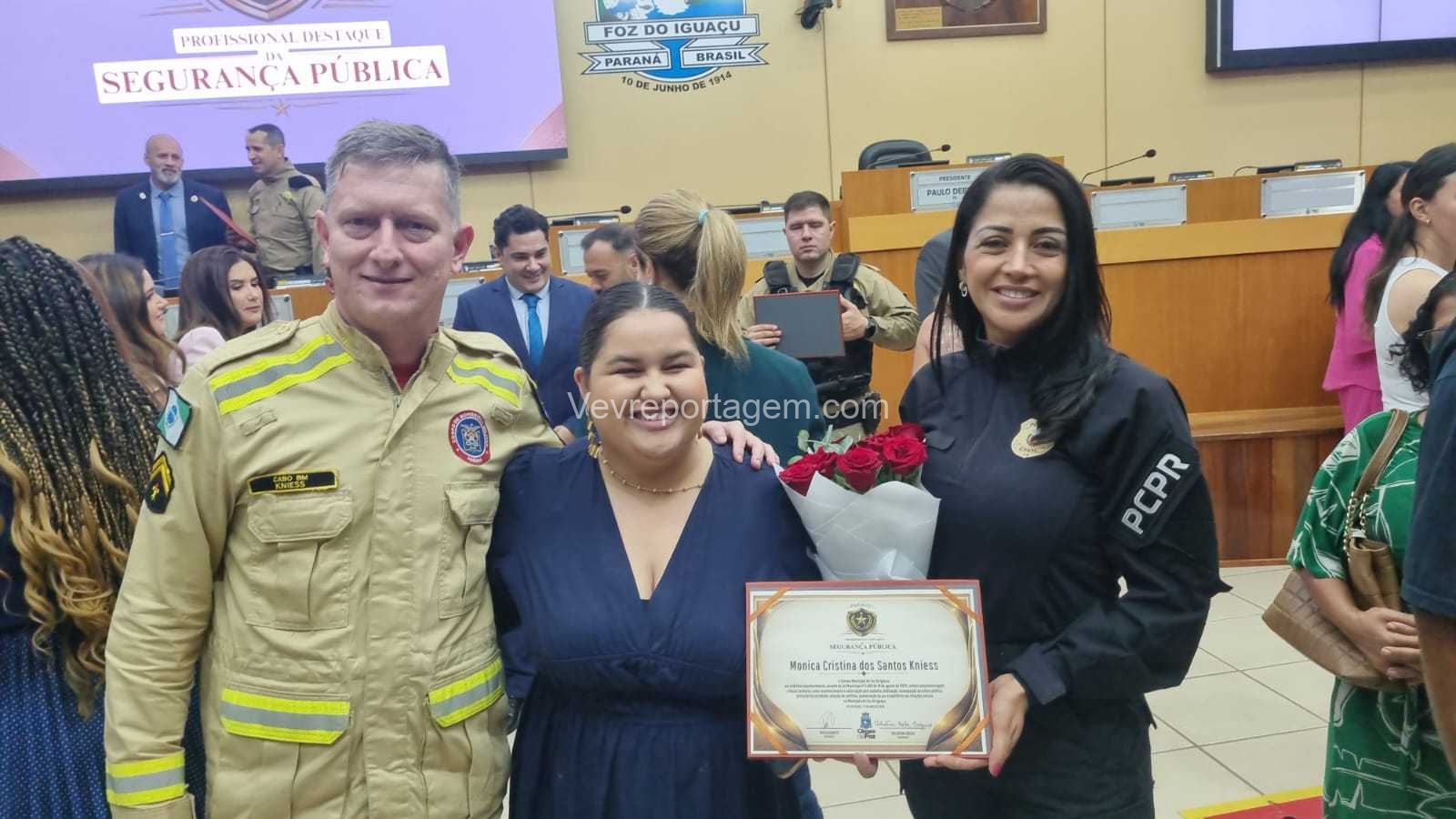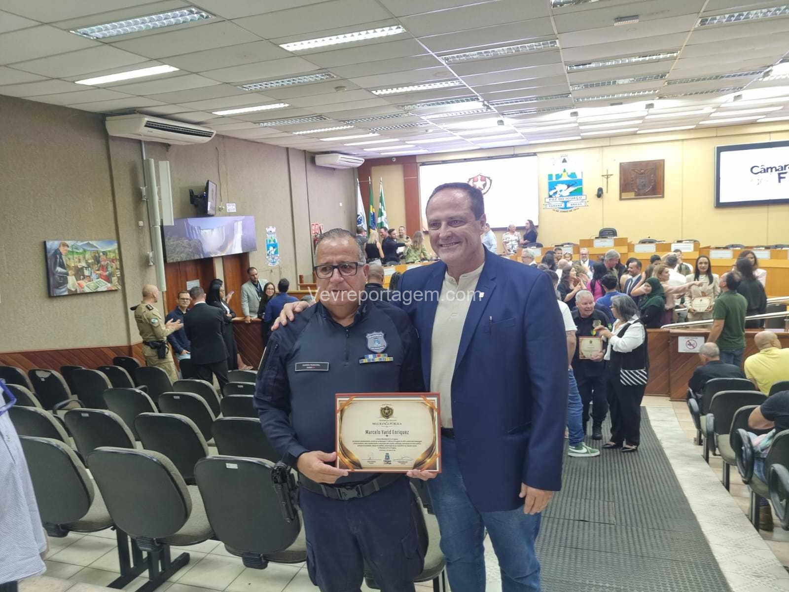 A Câmara Municipal de Foz do Iguaçu realizou, na manhã desta quinta-feira (23), a cerimônia de entrega do Prêmio Profissional da Segurança Pública, uma iniciativa criada para reconhecer homens e mulheres que dedicam suas vidas à proteção da sociedade. A honraria destaca o papel essencial desses profissionais na construção de uma cidade mais segura, pautada pela justiça, pela paz social e pelo bem-estar coletivo.