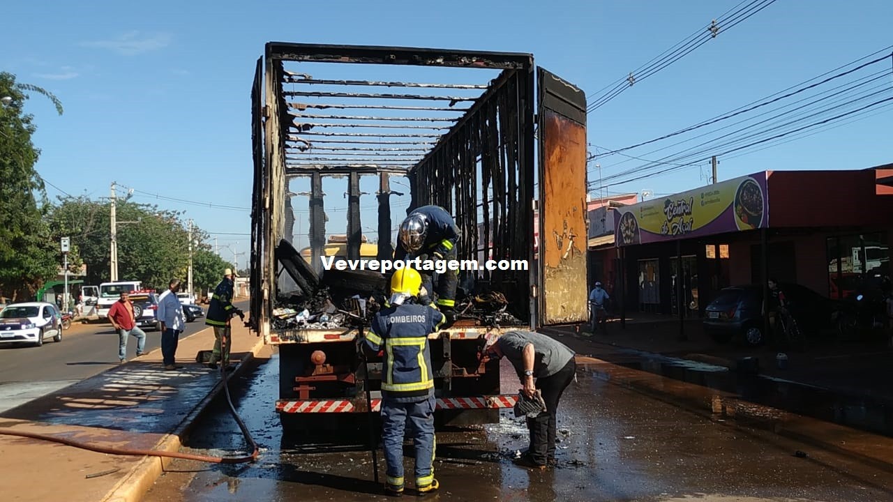 Após os bombeiros apagarem o incêndio do bagageiro do caminhão, o veiculo foi liberado para o senhor Flavio que fez a retirada do caminhão da via.