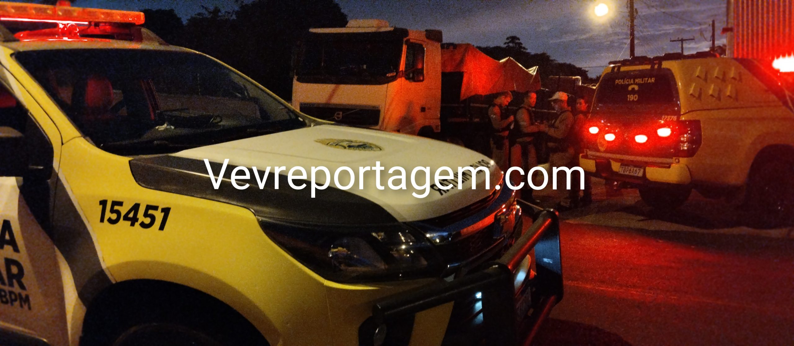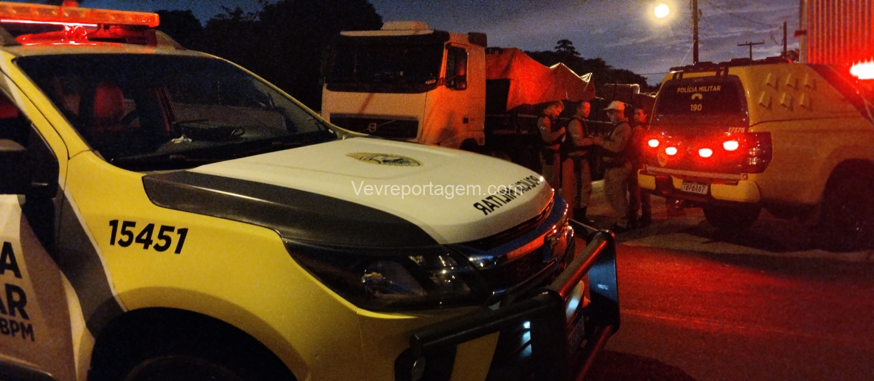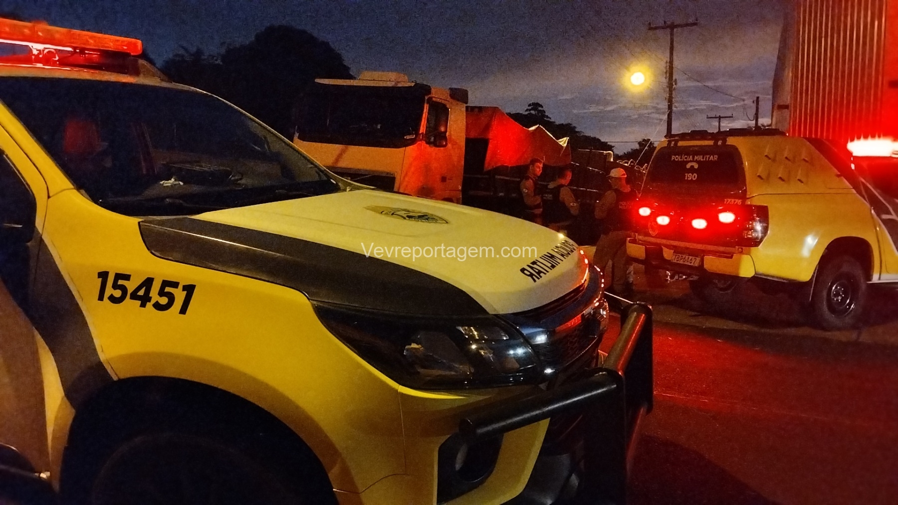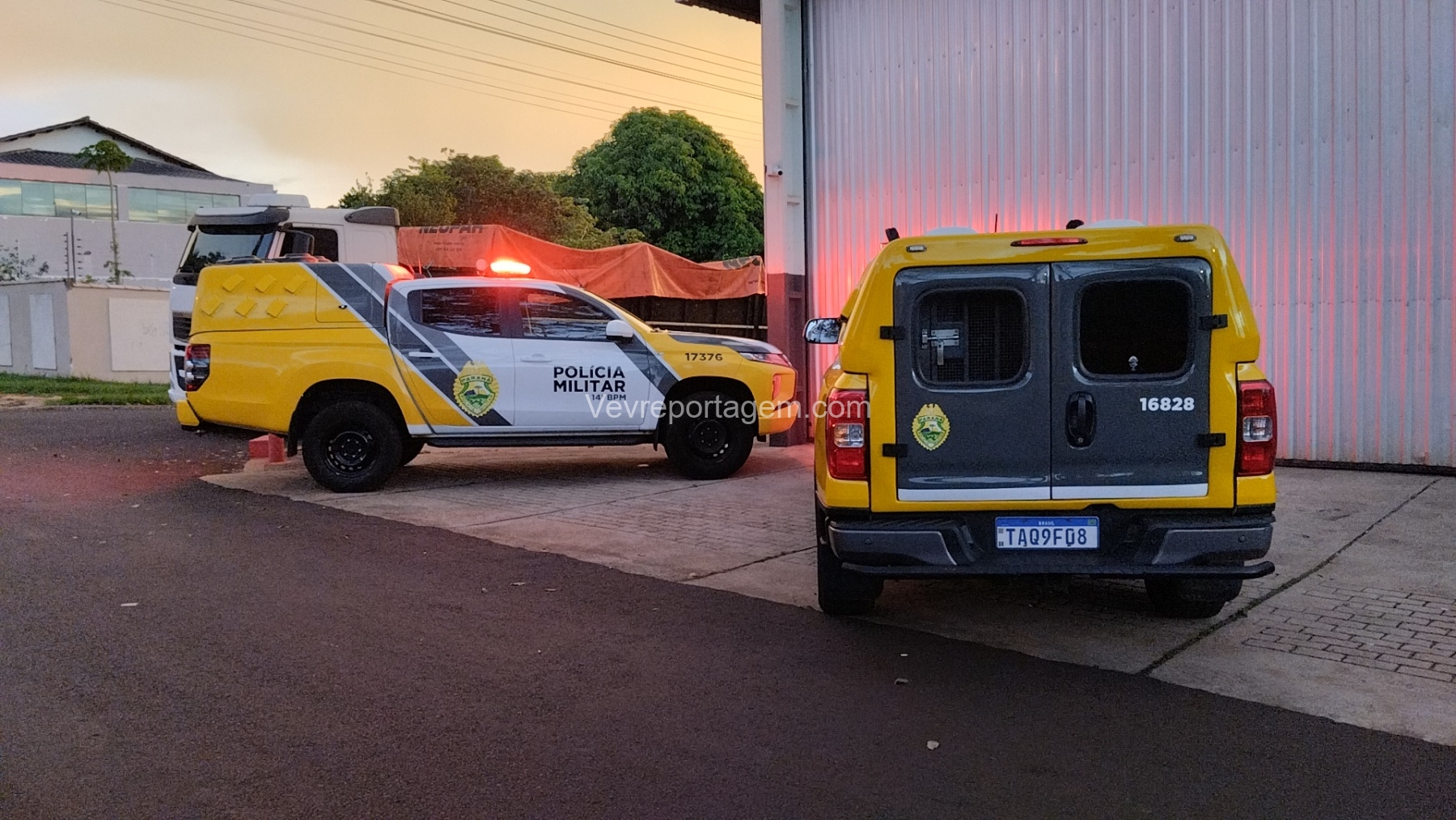 Na noite desta quarta-feira, 25 de março de 2026, equipes da Polícia Militar realizaram uma abordagem em um depósito após suspeita envolvendo o descarregamento de materiais por dois caminhões.