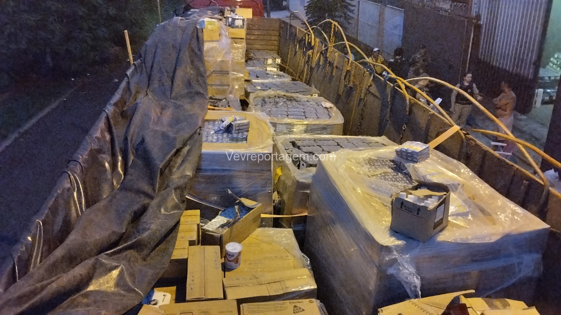 Nada foi apreendido e ninguém foi preso. Todo o material permaneceu no local sob responsabilidade do responsável pelo depósito. A ocorrência resultou apenas na confecção de boletim, registro e documentação completa dos fatos por parte da Polícia Militar e da Polícia Civil, que acompanharam a situação.