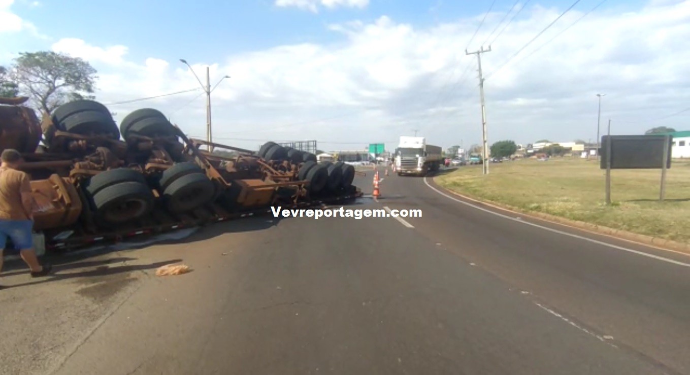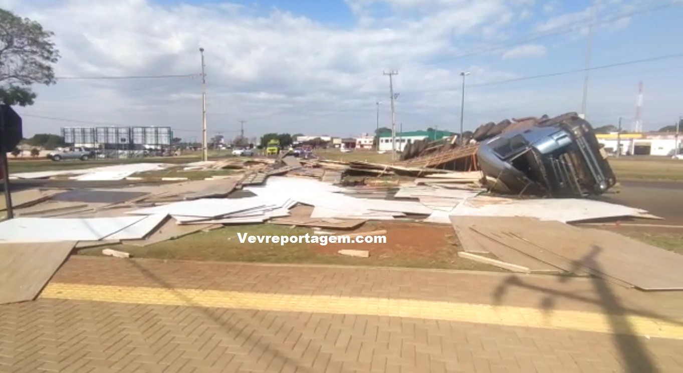 Na tarde desta segunda-feira (09), um caminhão com placas do Paraguai, tombou na BR277, em Foz do Iguaçu, no trecho conhecido como “Trevo do Charrua”.
