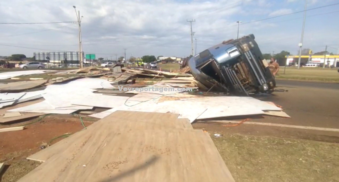 O caminhão estava carregado com placas de MDF. O motivo do tombamento pode ter sido por conta do peso da mercadoria transportada. Segundo informações repassadas por populares o motorista não estava em alta velocidade.