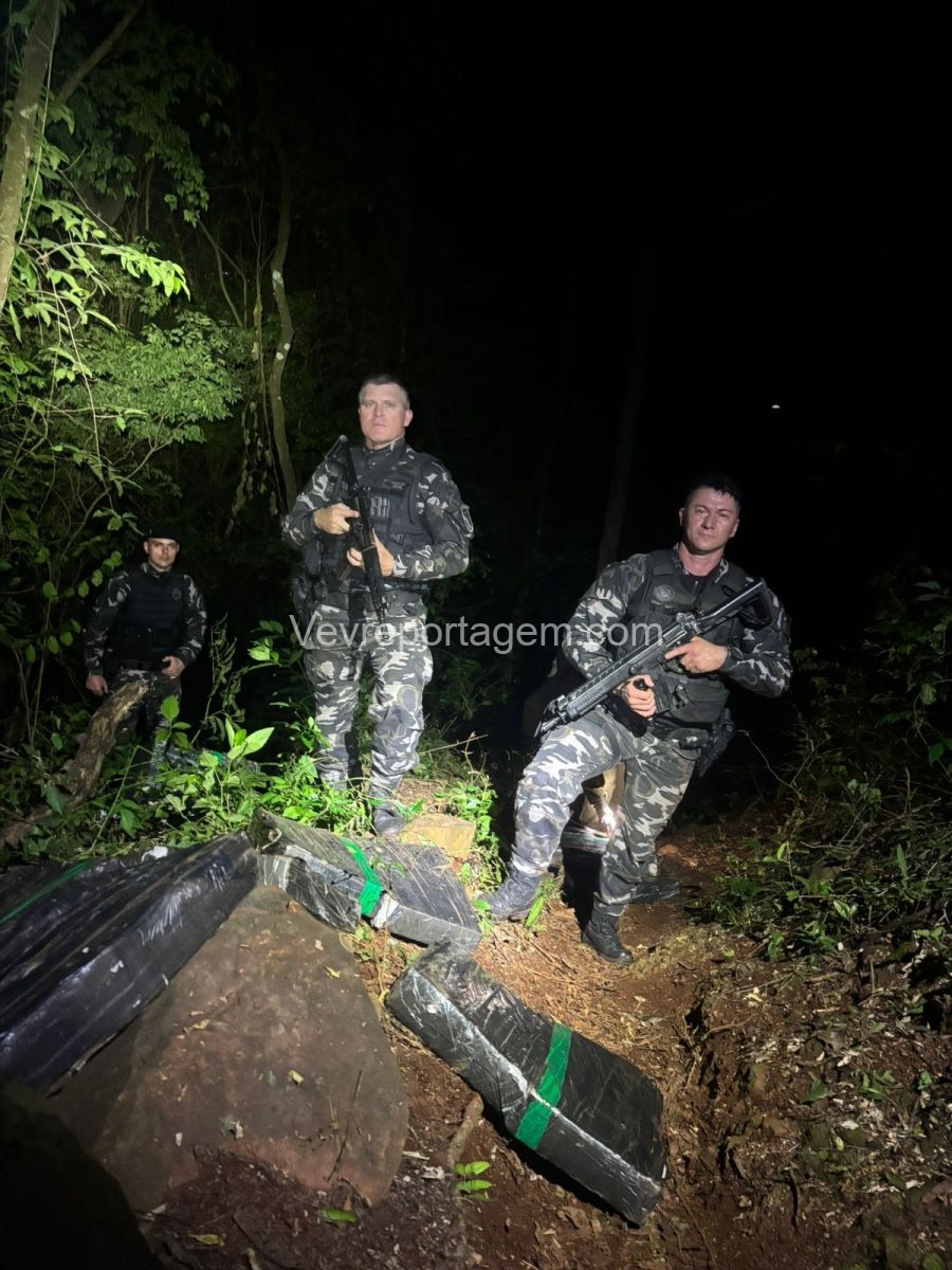 De acordo com o boletim de ocorrência, por volta das 22h35, os policiais observaram intensa movimentação de embarcações suspeitas que atracavam na margem brasileira do Rio Paraná, nos fundos do loteamento Vila Maria. Diante da situação, foi realizada uma incursão a pé pela área de mata, onde os agentes localizaram diversos volumes de entorpecente escondidos em meio à vegetação.