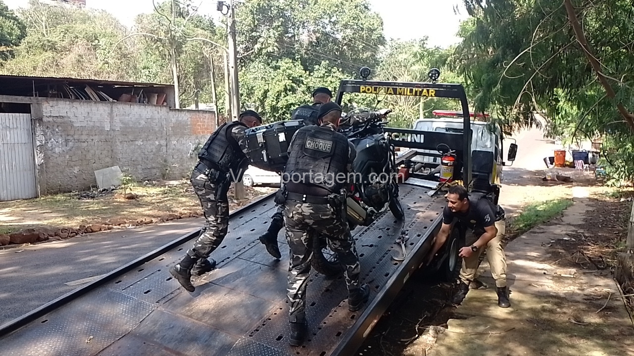 Durante as buscas pela mata, os militares não conseguiram localizar os fugitivos, mas acabaram encontrando uma motocicleta furtada ainda na manhã desta terça-feira.