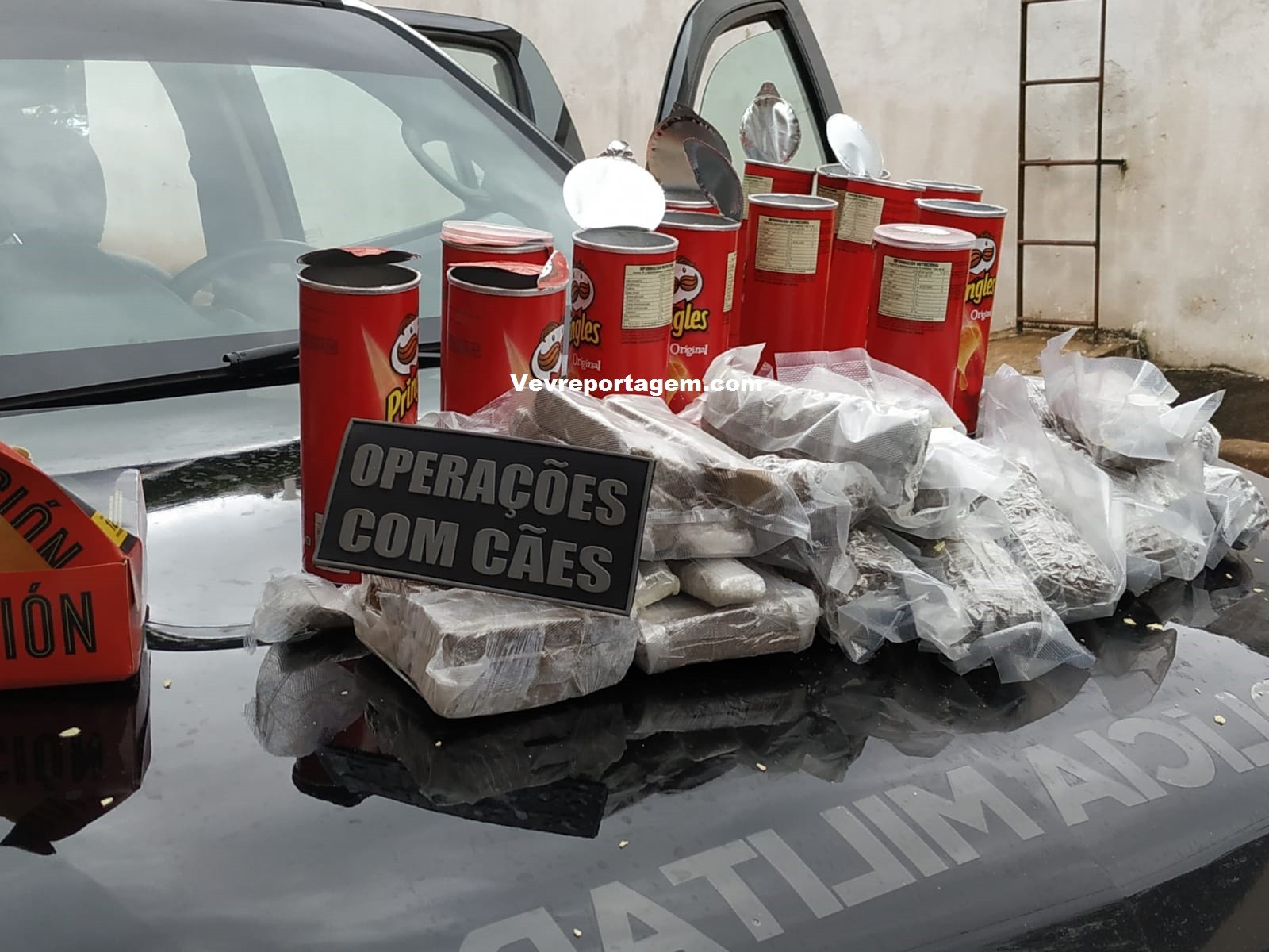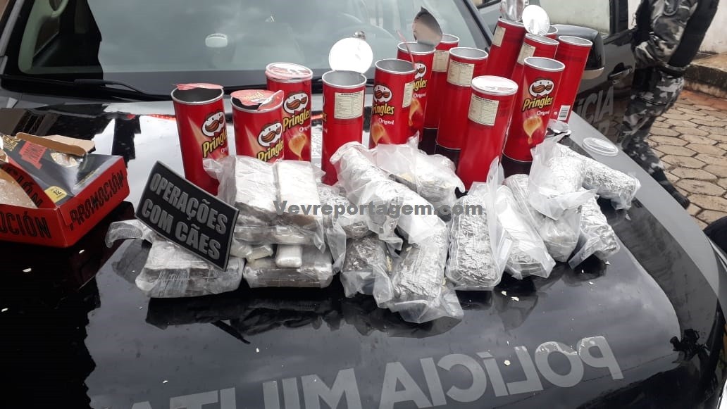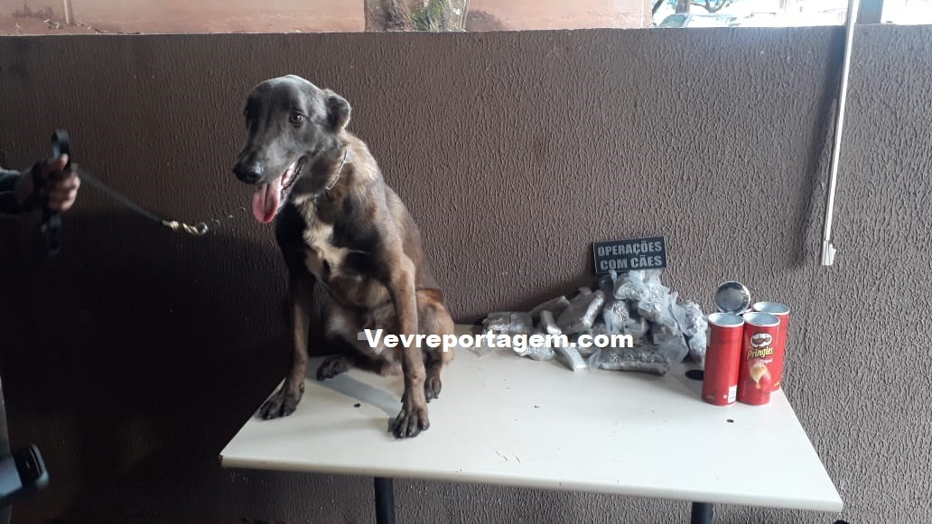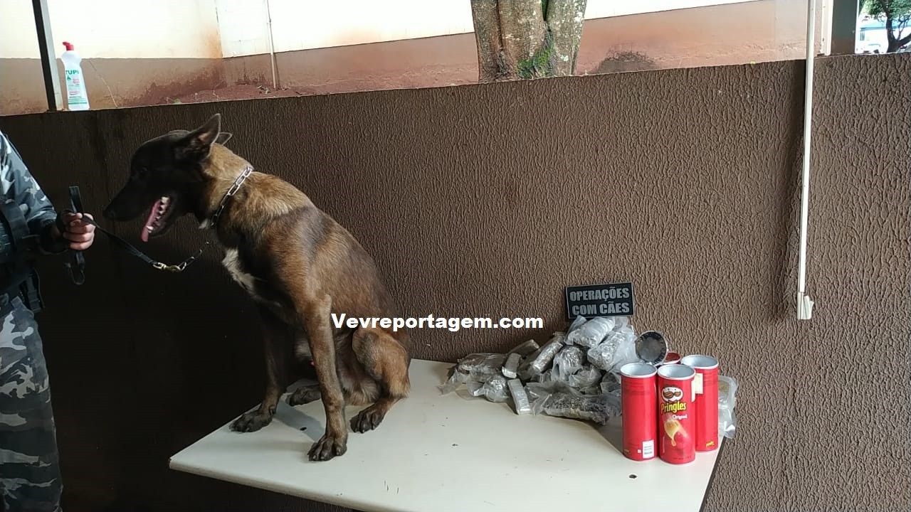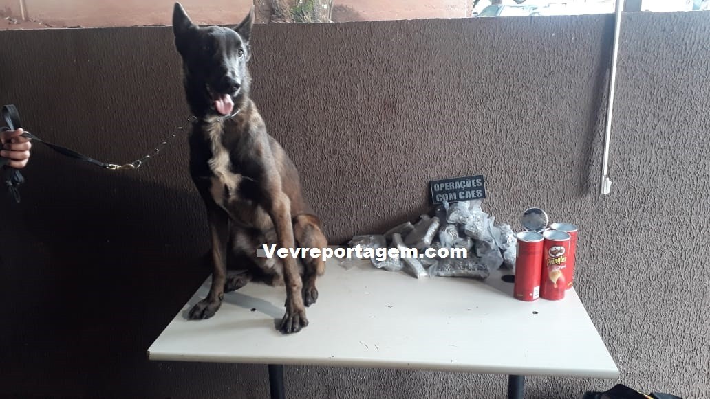 Devido o bagageiro do ônibus esta com muita bagagem, foi utilizado ajuda do cão farejador, o mesmo indicou uma mochila, a mulher fez de tudo para esconder a droga colocando em plastico a vaco e dentro de latas de chips, mas mesmo com todas as artimanhas, não inibiu o faro cão.