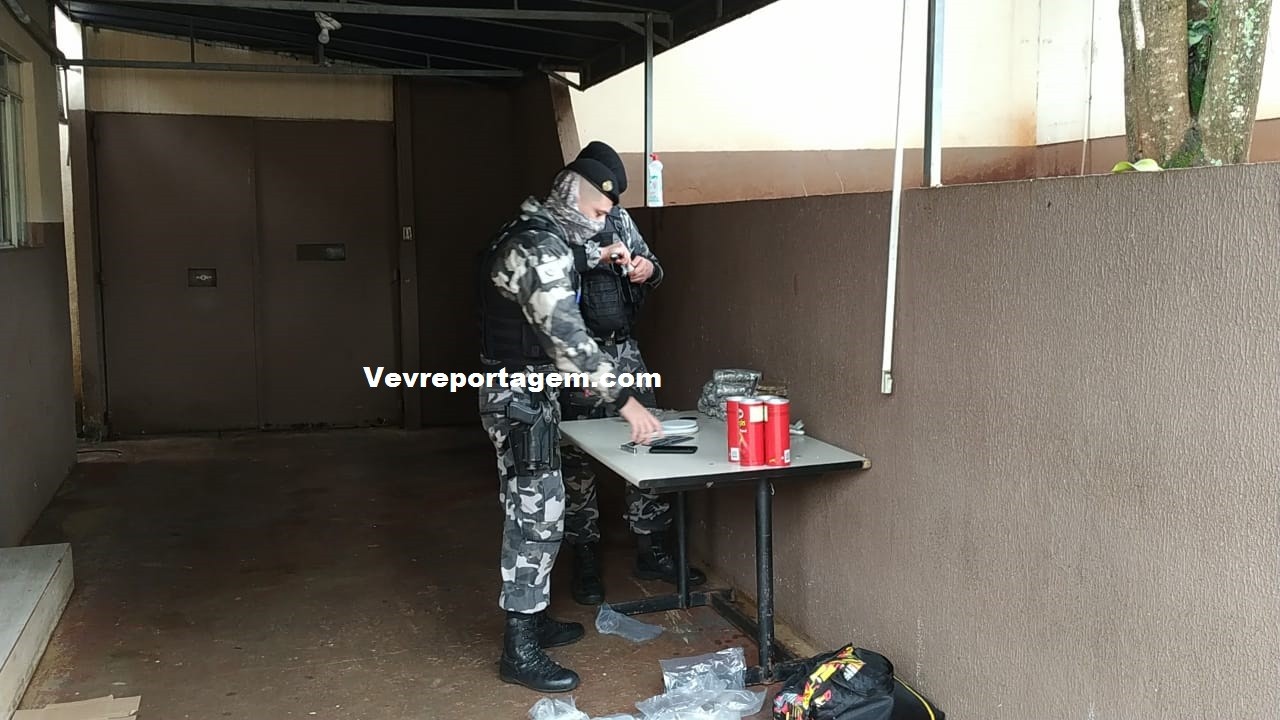 Na delegacia a droga foi pesada e totalizou 1,685 kg de Haxixe e 2,046 kg de Maconha.