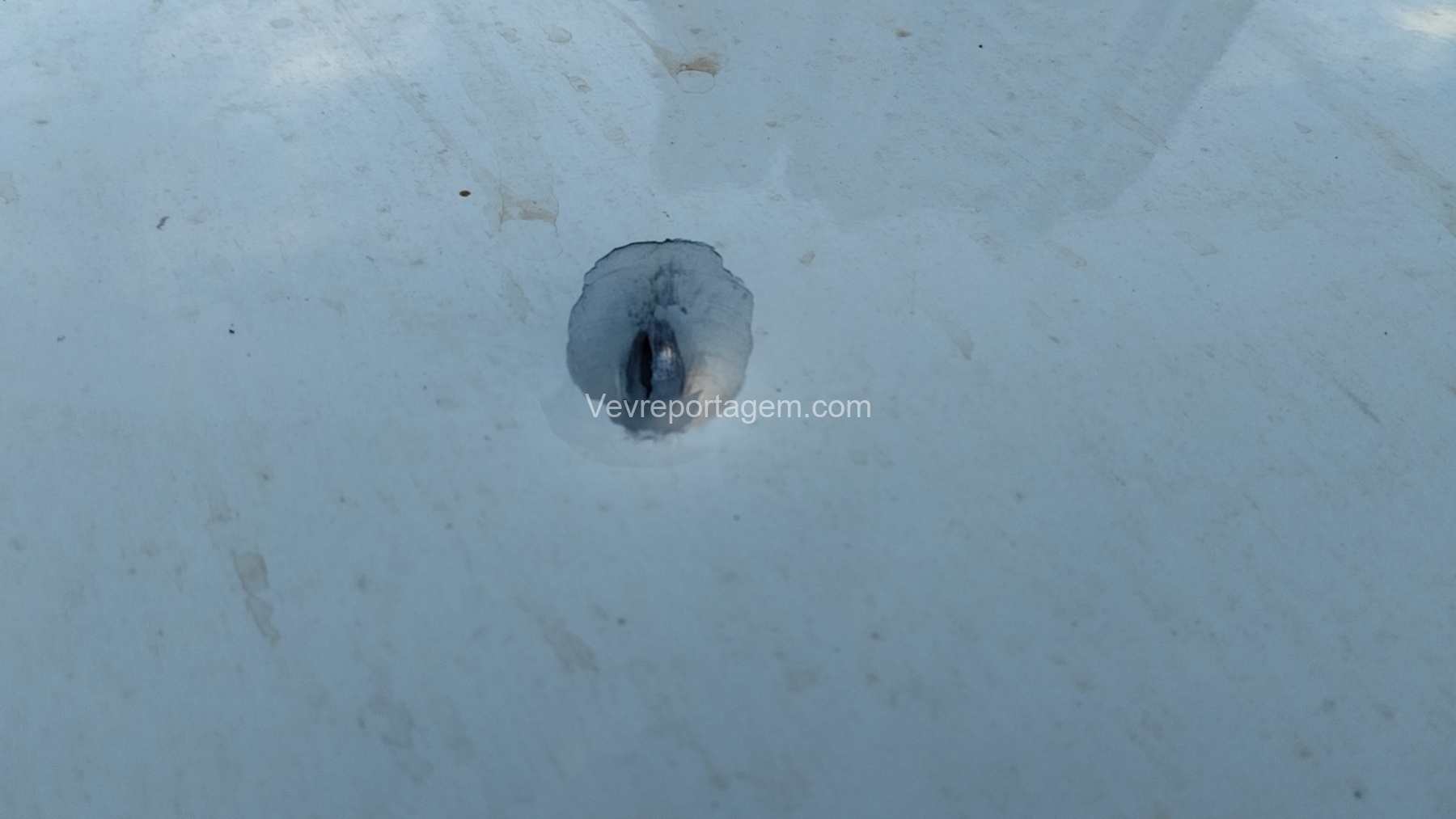 Outro detalhe que chamou a atenção da equipe foi a presença de um disparo de arma de fogo no capô do veículo.