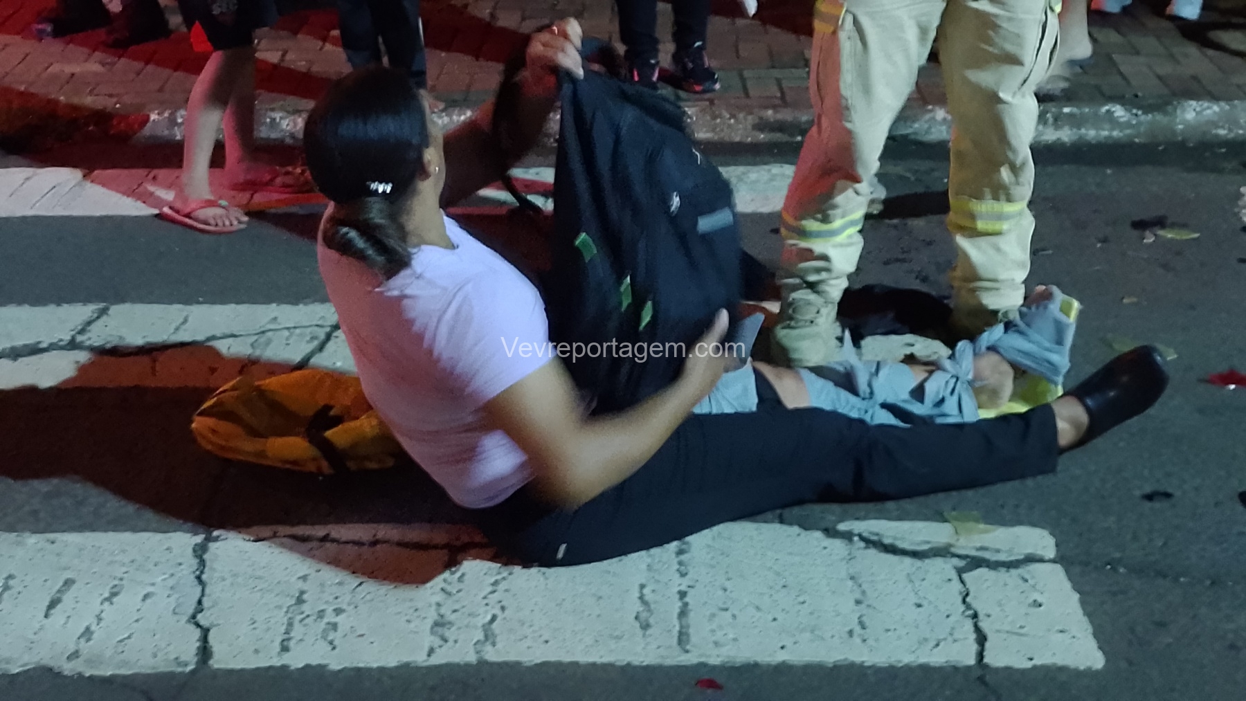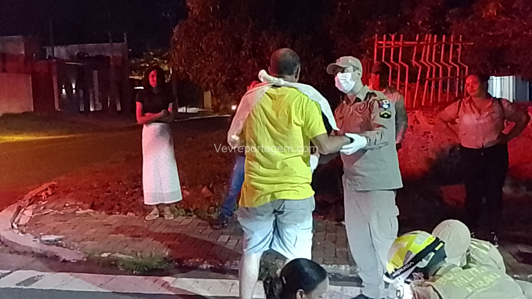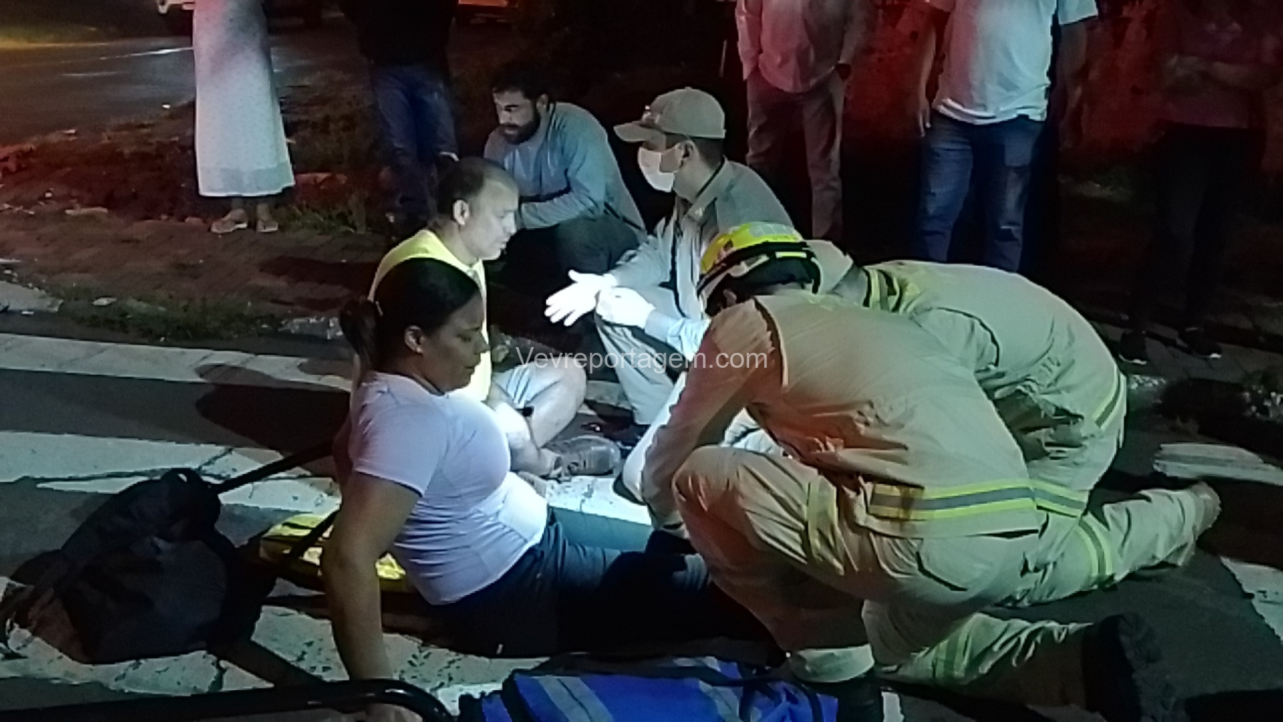 Durante o atendimento, o homem apresentava suspeita de fratura na clavícula. Ele foi imobilizado com o uso de tipóia e encaminhado, andando, até a ambulância do SIATE. Já a mulher apresentava lesões nos joelhos; ela teve a perna imobilizada, foi colocada em uma maca e encaminhada para o interior da ambulância para avaliação mais detalhada.
