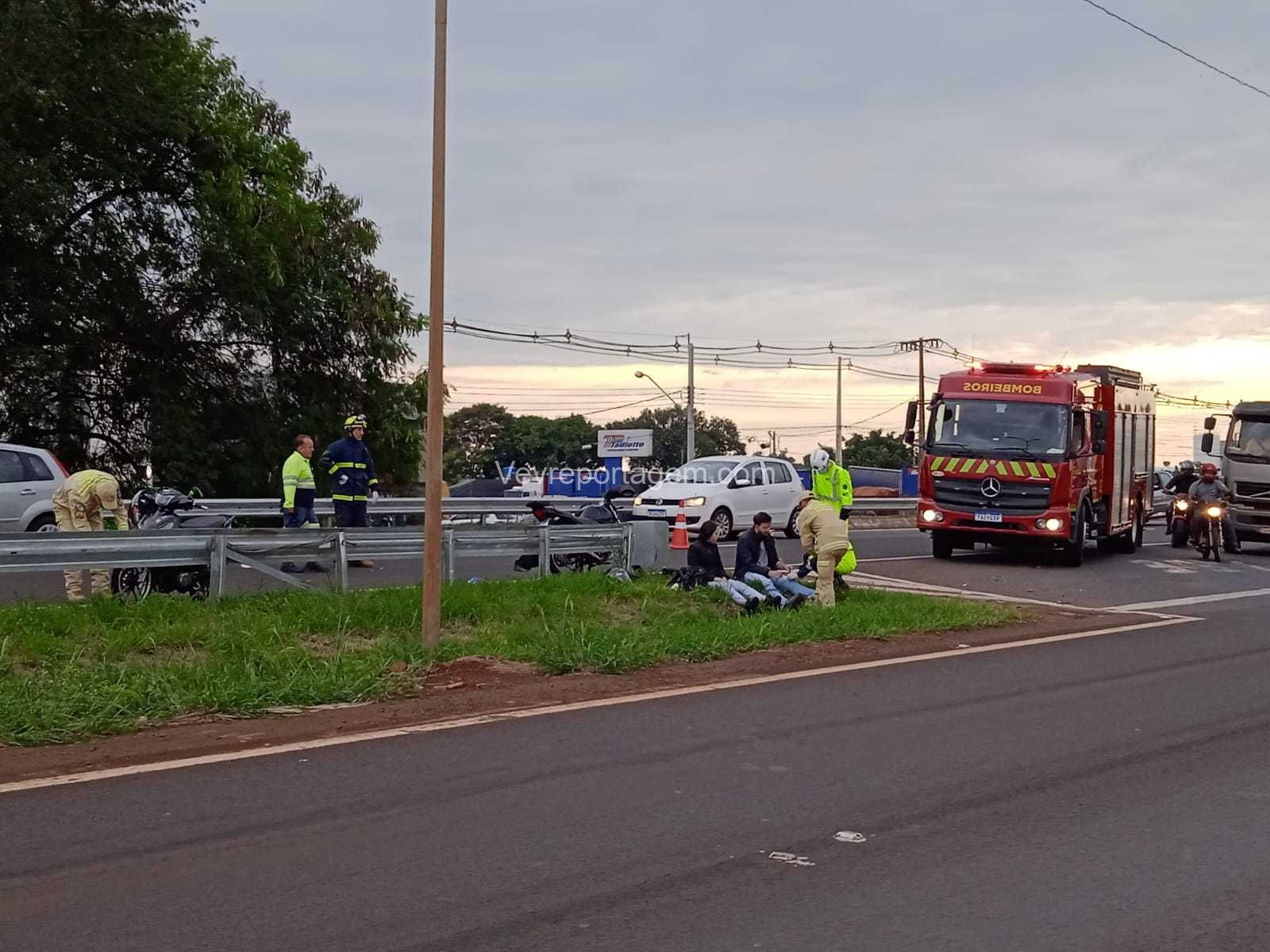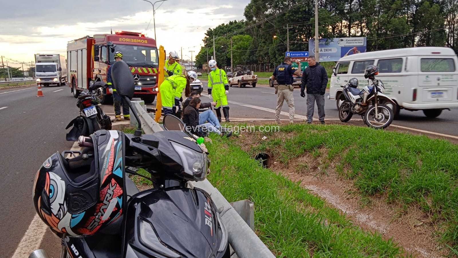 De acordo com as informações, duas pessoas ficaram feridas, sendo a condutora de uma das motocicletas e a passageira da outra.