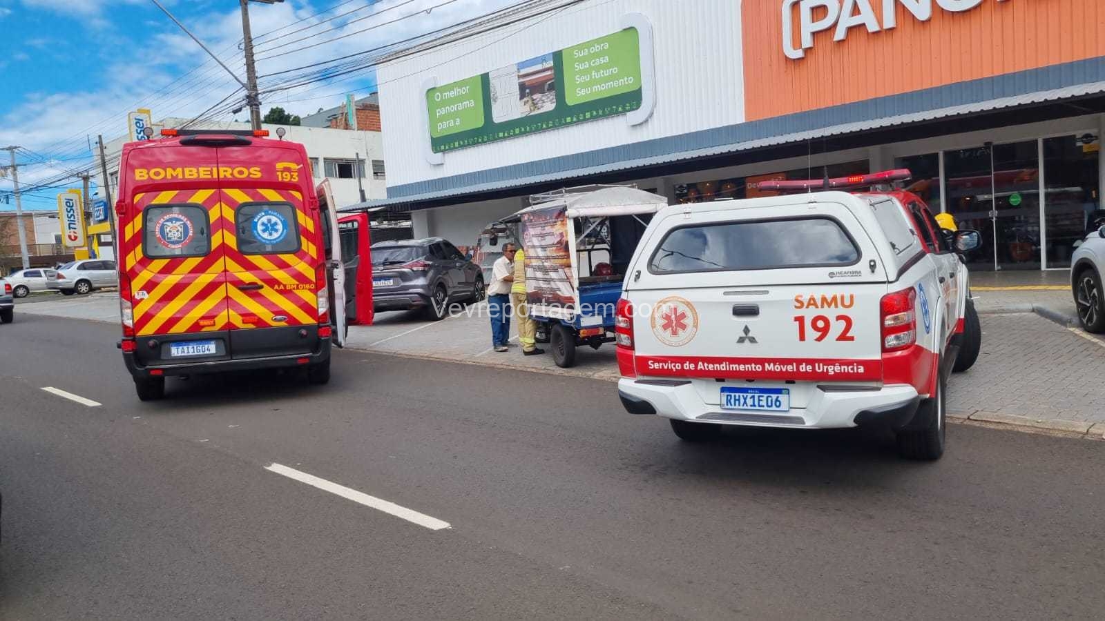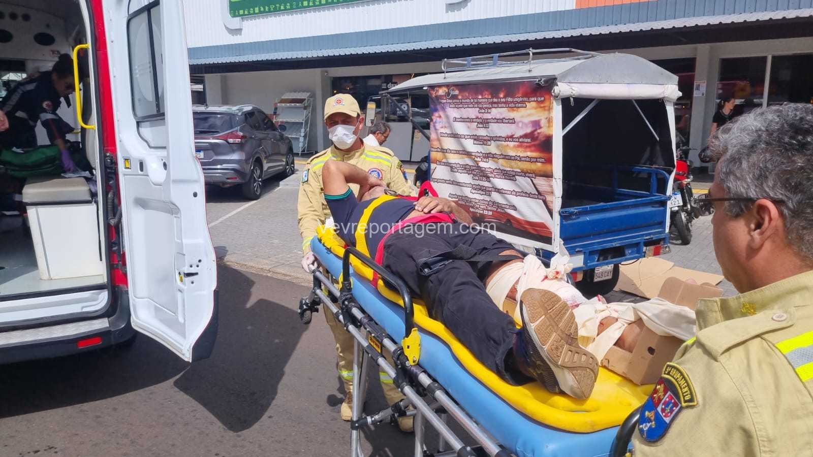 Devido à gravidade dos ferimentos, foi solicitado apoio médico do Samu, que auxiliou no atendimento da vítima. Após estabilização, o motociclista da moto de carga foi encaminhado ao Hospital Municipal.