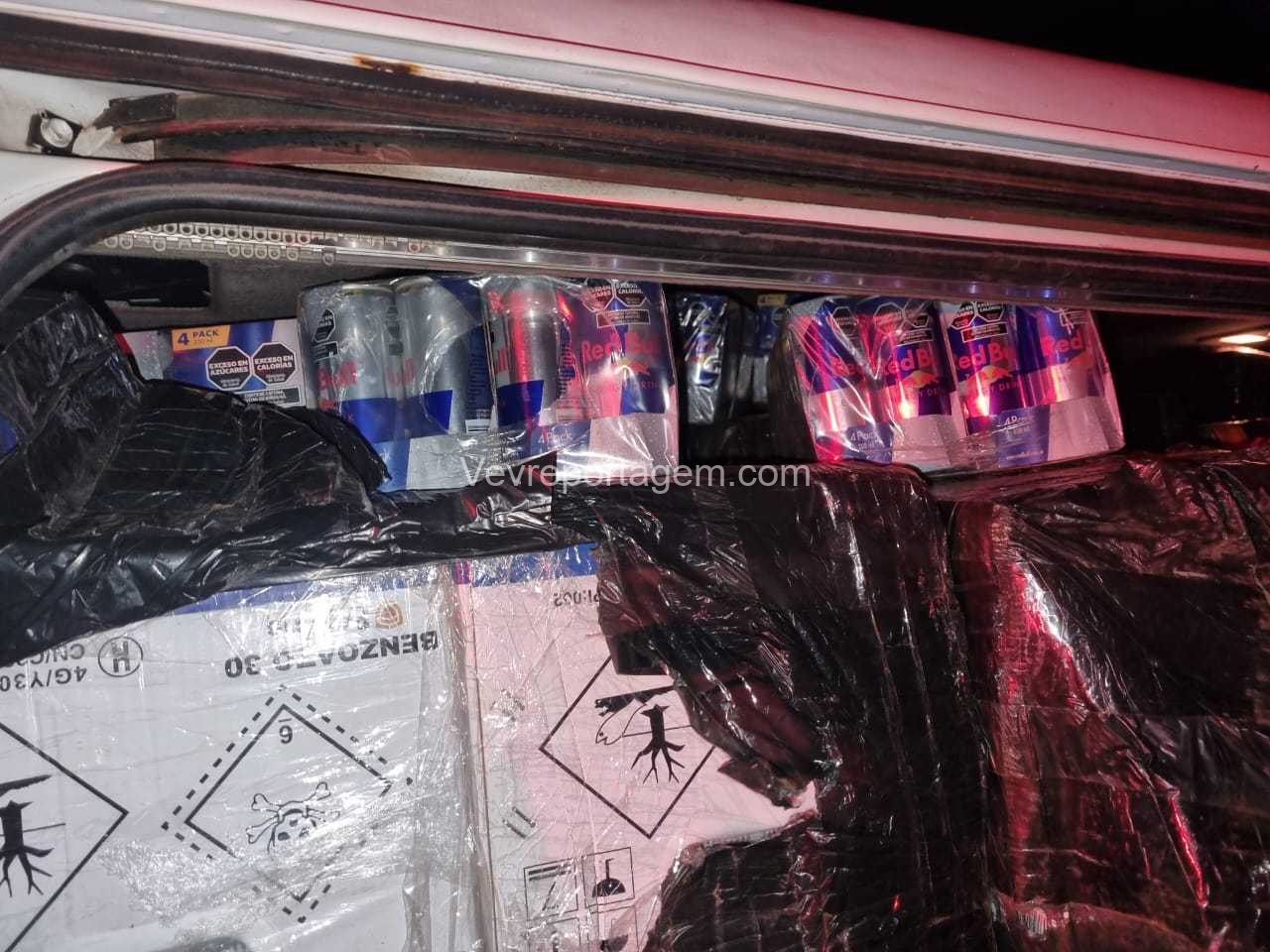 Durante a averiguação, os policiais encontraram diversas embalagens de agrotóxicos e bebidas no interior da van. Há indícios de que um segundo veículo, possivelmente atuando como batedor, tenha conseguido fugir antes da abordagem.
