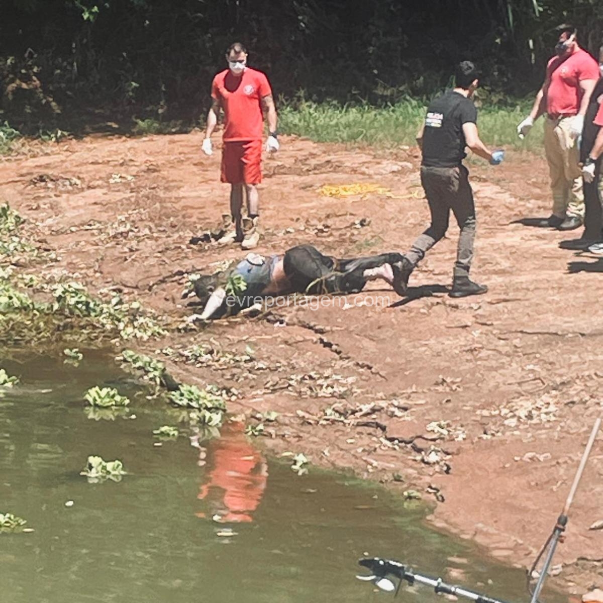 Após o chamado, a Guarda Municipal chegou ao local e, junto com o Corpo de Bombeiros, constatou que se tratava de um cadáver preso à vegetação aquática. Para realizar o resgate, os bombeiros utilizaram uma embarcação, fazendo a remoção do corpo até a margem. Em seguida, a área foi devidamente isolada e preservada para os procedimentos legais.