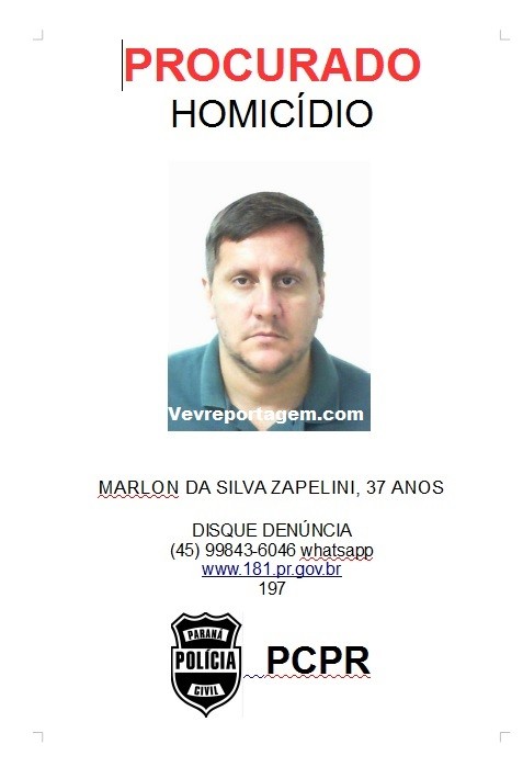 A delegacia de homicídios solicita a colaboração da população com informações que auxiliem na localização do procurado. A denúncia pode ser feita de forma anônima pelos telefones (45) 99843-6046, http://www.181.pr.gov.br ou 197.