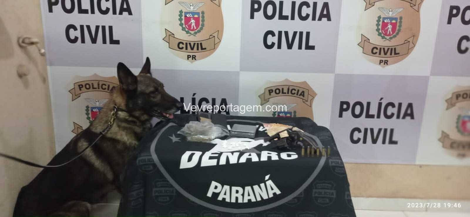 No final da tarde do dia 28-07-23, equipe da DENARC de Foz do Iguaçu, com apoio de Policiais Militares do CHOQUE, realizaram operação policial visando dar cumprimento a mandado de busca e apreensão em residência localizada em frente ao Centro Municipal de Educação Infantil, local que seria ponto de venda de drogas.